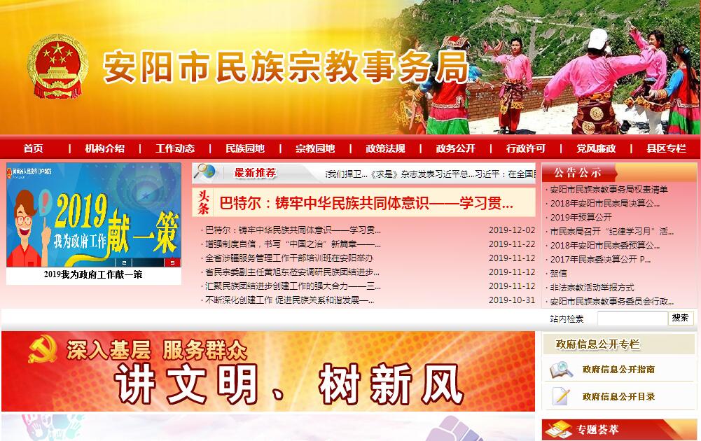 安阳市民族宗教事务局是主管全市民族宗教事务的市政府工作部门。主要贯彻党和国家民族、宗教工作方针、政策。协调全市各民族间的平等团结、互助合作。依法保护公民宗教信仰自由,依法加强对全市宗教事务的管理,推动在宗教界进行爱国主义、社会主义、拥护祖国统一和民族团结的教育。其主要职责是:(一)贯彻落实党和国家、省民族、宗教工作法律、法规和方针政策,研究并拟定全市有关民族、宗教事务的地方规范性文件,制定落实措施并监督实施。开展民族、宗教法律、法规和政策宣传教育工作。(二)协调全市民族关系,促进各民族平等、团结、互助、和谐,依法保护少数民族合法权益。处理涉及民族关系的有关事宜。做好城市民族工作及少数民族流动人口和流动穆斯林宗教服务管理工作。组织承办民族团结进步表彰活动。负责协调推动有关部门履行民族工作相关职责,促进民族政策在经济发展和社会事业有关领域实施、衔接。促进建立和完善少数民族事业发展综合评价监测体系,推进民族事务服务体系和民族事务管理信息化建设。(三)协同有关部门研究拟订全市促进少数民族经济发展的特殊政策和措施,配合有关部门做好少数民族扶贫工作。参与有关少数民族发展资金管理分配工作。(四)协调有关部门促进全市少数民族教育、科技、文化、卫生、体育等社会事业的发展。(五)依法保护公民宗教信仰自由,维护宗教团体和宗教活动场所的合法权益,保护宗教教职人员履行正常的教务活动,保护信教群众正常的宗教活动。办理宗教团体需由政府解决或协调的各项事务。(六)依法管理全市宗教事务,促进宗教关系和谐,引导宗教界在法律、法规和政策范围内活动,防范和制止利用宗教进行非法、违法活动,抵御境外利用宗教进行渗透活动。(七)负责宗教方面的外事归口管理工作,组织指导有关部门和宗教界开展对外以及对港、澳、台地区的宗教交往活动,参与涉及民族和宗教对外宣传工作。负责全市伊斯兰教朝觐事务管理工作。(八)协助有关部门做好全市少数民族干部和各类专业技术人才的培养、教育和使用工作。(九)分析和研判涉及民族关系、宗教关系和谐稳定等方面的舆情。(十)指导全市民族、宗教事务部门的工作,协助各地方人民政府及时处理民族、宗教方面的突发事件、重大事件和影响社会稳定的因素。(十一)负责少数民族古籍搜集、整理和出版等工作。(十二)承办市政府交办的其他事项。