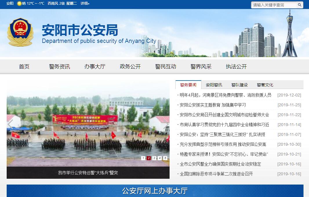 安阳市公安局是主管全市公安工作的市政府组成部门,根据公安机关的主要工作责任,安阳市公安局设“四部七支队”共11个内设机构和14个派出机构。在市委、市政府和公安厅的领导下,安阳市公安局承担如下工作职责:(一)贯彻落实国家公安工作法律、法规和方针、政策,制定全市公安工作的有关规定,部署、指导、监督、检查全市公安工作。(二)掌握影响社会稳定、危害全市安全和社会治安的情况分析形势,制定对策。(三)组织指导全市公安机关侦查工作,协调、办理重大刑事案件、市内危害国家安全的犯罪案件、重大经济犯罪案件及上级批转的重大案件及专项工作。(四)负责全市治安管理工作并承担相应责任。协调、处置重大治安事故和群体性事件,指导、监督全市公安机关依法查处破坏社会治安秩序行为,依法开展治安行政管理工作,指导、监督县级公安机关治安保卫工作。(五)负责出入境管理有关工作。依法开展管理国籍工作,组织指导全市出入境、持普通护照的外国人和香港、澳门特别行政区及台湾地区人员在安阳市居留、旅行的有关管理工作。(六)负责全市消防工作并承担相应责任。指导、监督、协调全市消防监督、火灾预防、火灾扑救和公安应急抢险救援工作。(七)负责全市道路交通安全管理工作并承担相应责任。指导、监督全市公安机关维护道路交通安全、道路交通秩序以及开展机动车辆(不含拖拉机)、驾驶人管理工作;维护市管高速公路交通、治安秩序。(八)指导、监督并组织实施全市公安机关对公共信息网络的安全保护工作,负责信息安全等级保护工作的监督、检查、指导。(九)组织、指导、协调对恐怖活动的防范、侦察工作。(十)指导、监督全市公安机关依法承担的执行刑罚工作,指导、监督全市公安机关对看守所、治安拘留所、强制隔离戒毒所、收容教育所的管理工作。(十一)组织开展全市公安科学技术工作,规划全市公安机关指挥系统、信息技术、刑事技术建设。(十二)参与拟订公安机关装备、经费标准,拟订管理制度。组织协调全市公安机关重大任务的警务保障工作。(十三)组织协调全市公安机关与市外、境外警察机构的业务交流与合作。(十四)统一领导全市公安消防、警卫部队建设,对武警支队执行公安任务及相关业务建设实施领导和指挥。(十五)按规定权限管理干部人事工作。拟订全市公安队伍管理监督规定,组织、指导公安机关督察、审计、信访工作,按规定权限实施对干部的监督,查处或督办公安队伍重大违纪案件,指导全市公安队伍思想作风、工作作风建设。(十六)承办市委、市政府交办的其他事项。