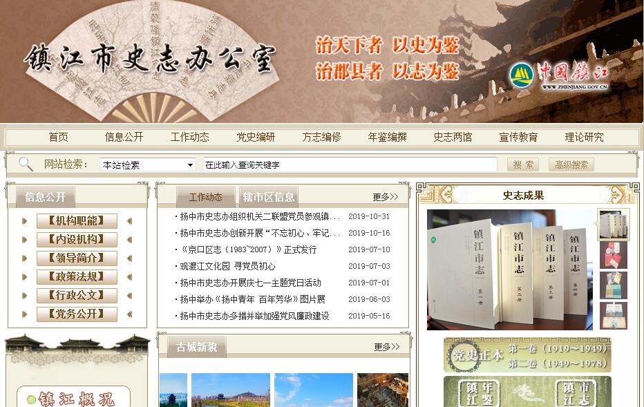 根据《中共江苏省委、江苏省人民政府关于印发<镇江市机构改革方案>的通知》(苏委〔2001〕138号)和《中共镇江市委、镇江市人民政府关于镇江市市级党政机构改革的实施意见》(镇发〔2001〕34号),不再保留市委党史工作办公室、市地方志编纂委员会办公室,重新组建市史志办公室,对外保留“市委党史工作办公室”的牌子,为参照国家公务员制度管理的直属事业机构,正处级建制,由市委办公室、市政府办公室共同管理,以市委办公室管理为主。机构主要职能:(一)贯彻落实党和国家有关中共党史、地方志工作的方针、政策,制订全市中共地方党史、地方志工作的规划并组织实施。(二)组织编纂和出版中共镇江地方党史、镇江市志和镇江年鉴,编辑出版有关史志书籍、地情资料和刊物。(三)对辖市(区)、市直各部门史志年鉴编纂工作进行组织协调、业务指导、审稿验收工作。(四)征集、收藏、整理保管党史和地情资料,组织整理旧志。(五)参与组织全市重大纪念活动,运用史志资料和研究成果,面向社会开展宣传教育工作。(六)参与重要革命遗迹和纪念地的调查、认定、预审、建标立碑、宣传利用工作。(七)组织开展史志年鉴理论研究,管理和指导市中共党史学会、方志年鉴学会和市新四军暨茅山抗日根据地研究会,评审史志科研成果。(八)承担市委、市政府下达的有关任务,完成上级党史、地方志部门交办的工作事项。