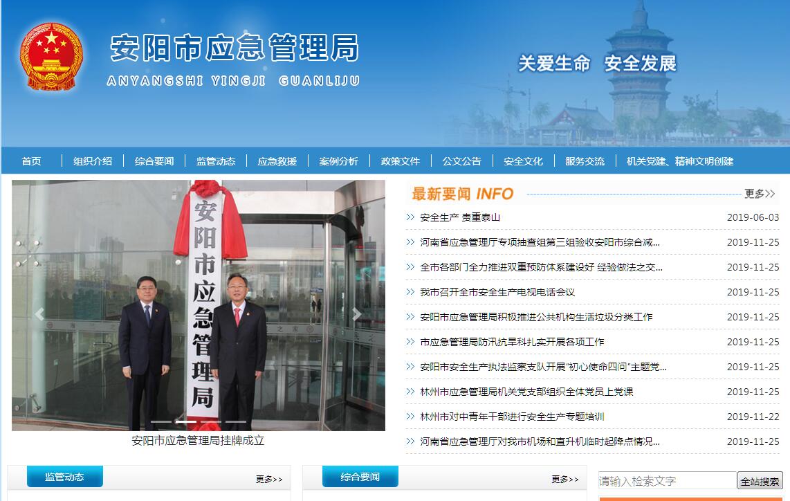 安阳市应急管理局主要职责:(一)负责全市应急管理工作,指导县(市、区)、市直各部门应对安全生产类、自然灾害类等突发事件和综合防灾减灾救灾工作。负责全市安全生产综合监督管理和工矿商贸行业安全生产监督管理工作。(二)拟定全市应急管理、安全生产等政策规定,组织编制市应急体系建设、安全生产和综合防灾减灾规划,起草相关规范性文件,组织制定相关规程和标准并监督实施。(三)指导全市应急预案体系建设,建立完善事故灾难和自然灾害分级应对制度,组织编制全市总体应急预案和安全生产类、自然灾害类专项预案,综合协调应急预案衔接工作,组织开展预案演练,推动应急避难设施建设。(四)牵头建立统一的全市应急管理信息系统,负责信息传输和共享,建立监测预警和灾情报告制度,健全自然灾害信息资源获取和共享机制,依法统一发布灾情。(五)组织指导协调安全生产类、自然灾害类等突发事件应急救援,承担市应对较大灾害指挥机构工作,综合研判突发事件发展态势并提出应对建议,协助市委、市政府指定的负责同志组织较大灾害应急处置工作。(六)统一协调指挥各类应急专业队伍,建立应急协调联动机制,推进指挥平台对接,衔接驻安解放军和武警部队参与应急救援工作。(七)统筹应急救援力量建设,负责森林和草原火灾扑救、抗洪抢险、地震和地质灾害救援、生产安全事故救援(含煤矿)等专业应急救援力量建设,指导市综合性应急救援队伍建设,指导县(市、区)及社会应急救援力量建设。(八)组织指导消防工作,指导消防监督、火灾预防、火灾扑救等工作。(九)指导协调全市森林和草原火灾、水旱灾害、地质灾害等防治工作;组织指导防震减灾相关工作;负责自然灾害综合监测预警工作,指导开展自然灾害综合风险评估工作。(十)组织协调全市灾害救助工作,组织指导灾情核查、损失评估、救灾捐赠工作,按权限管理、分配救灾款物并监督使用。(十一)依法行使安全生产综合监督管理职权,指导协调、监督检查市政府有关部门和各县(市、区)政府安全生产工作,督促、指导安全生产责任落实。组织开展安全生产巡查、考核工作。承担安阳市安全生产委员会日常工作。(十二)按照分级、属地原则,依法监督检查非煤矿山(含地质勘探)、石油(不含炼化、成品油管理道)、化工(含石油化工)、医药、危险化学品和烟花爆竹、冶金、有色、建材、机械、轻工、纺织、烟草、商贸等工矿商贸行业生产经营单位贯彻执行安全生产法律法规和标准情况,及其安全生产条件和有关设备(特种设备除外)、材料、劳动防护用品的安全生产管理工作。依法组织实施安全生产准入制度,并对执行情况进行指导和监督。负责危险化学品安全监督管理综合工作和烟花爆竹经营企业安全生产监督管理工作。(十三)依法组织指导生产安全事故调查处理,监督事故查处和责任追究落实情况。组织开展自然灾害类突发事件的调查评估工作。协助国家、省调查处理特别重大、重大事故。综合管理全市生产安全伤亡事故、事故隐患排查治理、 安全生产统计分析工作。(十四)制定应急物资储备和应急救援装备规划并组织实施,会同安阳市发展和改革委员会(安阳市粮食和物资储备局)等部门建立健全应急物资信息平台和调拨制度,在救灾时统一调度。(十五)负责应急管理、安全生产宣传教育和培训工作,组织指导应急管理、安全生产的科学技术研究、推广应用和信息化建设工作;配合省厅组织实施特种作业(不含煤矿安全作业)人员操作资格考核工作,依法组织、指导并监督本行政区域内除中央企业、省属生产经营单位以外的其他工矿商贸生产经营单位(不含煤矿企业)的主要负责人和安全生产管理人员安全生产知识和管理能力考核工作,监督检查工矿商贸生产经营单位安全培训工作;配合省厅监督、指导注册安全工程师执业资格考试和注册管理工作。(十六)负责监督指导和组织协调全市安全生产行政执法工作;依法查处不具备安全生产条件的工贸生产经营单位;负责安全生产执法综合性工作,指导执法计划编制、执法队伍建设和执法规范化建设工作;负责较大安全生产违法案件查处和跨区域执法的组织协调工作。(十七)开展应急管理方面的交流与合作,组织参与安全生产类、自然灾害类等突发事件的跨区域救援工作。(十八)完成市委、市政府交办的其他任务。