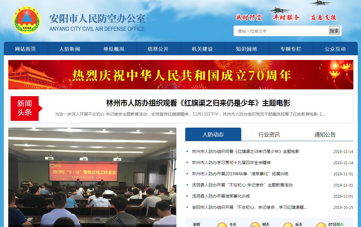 安阳市人民防空办公室主要职责:(一)贯彻执行国家人民防空法律、规章和方针政策,拟订全市人民防空地方性法规、规章草案并监督实施。(二)负责拟订全市人民防空建设规划、城市平战综合防护建设发展规划及相关专项规划并组织实施;参与拟订重要经济目标防护建设总体规划、城市地下空间暨人民防空工程综合利用规划并协同实施。(三)监督管理全市人民防空设施建设、维护和使用。(四)监督指导城市地下空间兼顾人民防空需要防护部分的管理。(五)负责组织开展人民防空执法监管工作。(六)会同有关部门指导开展城市和重要经济目标单位防护工作;组织拟订修订城市人民防空袭方案,指导拟订重要经济目标防护方案,组织开展城市人民防空演训。(七)指导开展人民防空群众组织建设。(八)开展人民防空日常战备工作。(九)组织开展人民防空宣传教育工作。(十)组织开展人民防空科研工作,推进人民防空科技创新和科研成果转化应用推广。(十一)组织实施人民防空信息化体系能力建设。(十二)负责人民防空平战结合工作,利用人民防空战备资源参与抢险救灾、服务民生、改善民生,为应急救援提供支持;战时组织开展城市人民防空行动。(十三)推进人民防空建设与经济社会融合发展。(十四)落实人民防空队伍建设要求,对县(市、区)人民防空办公室主任、副主任的任免提出意见。(十五)负责依法征缴人民防空工程易地建设费,会同有关部门制定人民防空建设市场投融资政策。(十六)完成市委、市政府及军分区交办的其他任务。