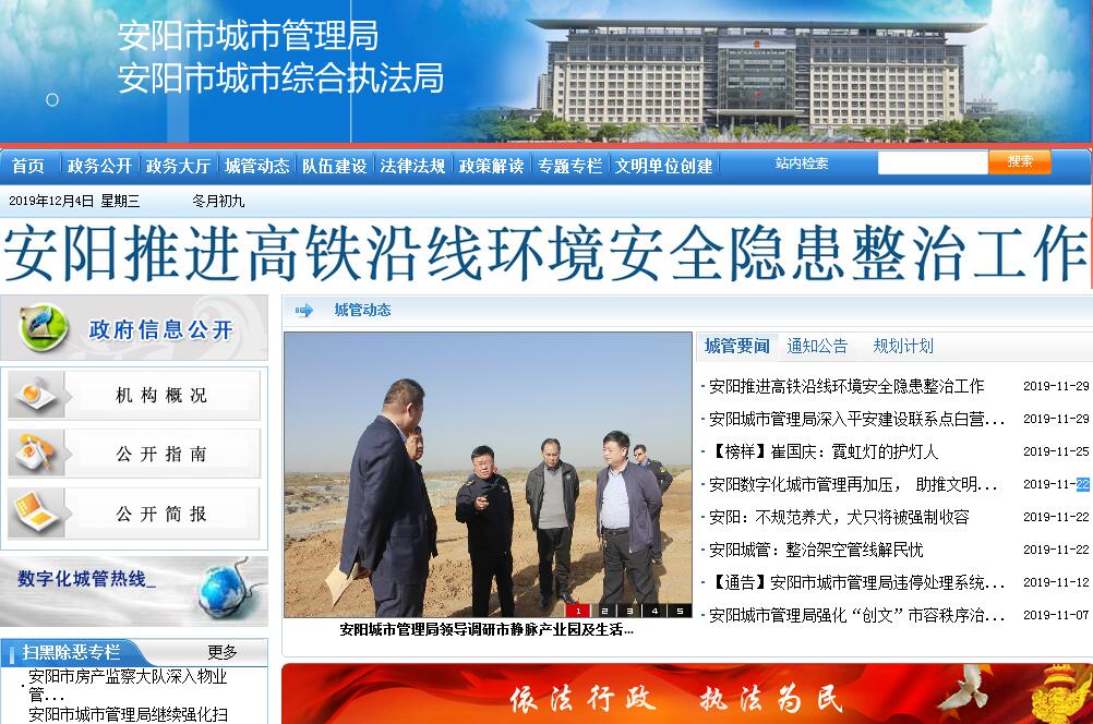 安阳市城市管理局主要职责:(一)贯彻实施国家、省、市有关城市管理和综合执法工作的方针、政策、法律、法规和规章,参与起草城市管理和综合执法方面的地方性法规、规章草案,研究制定全市城市管理和综合执法工作的发展战略、中长期规划和年度计划并组织实施。(二)负责全市城市管理和综合执法工作的业务指导、组织协调、监督检查和考核评价;指导各县(市、区)城市管理和综合执法队伍建设。(三)负责各县(市、区)城市管理和综合执法争议事项的指定管辖,负责全市重点区域的指定管辖。(四)负责全市市容环境卫生管理工作的指导、监督、检查和考评工作。(五)负责全市园林绿化管理工作的指导、监督、检查和考评工作。(六)负责市区亮化照明设施运行管理工作的指导、监督、检查和考评工作。(七)负责违法建设治理方面跨区域重大违法建设的监管。(八)负责公共空间秩序管理方面户外广告、报刊亭、商亭的设置规划编制、监督检查等工作。(九)负责城市交通管理方面大型公共停车场管理和公共自行车的管理。(十)负责水务管理方面对向城市河道倾倒废弃物和垃圾、违规取土、占压城市河道违法建筑物拆除等行政处罚工作的监督、检查工作。(十一)负责城市管理方面的城市应急管理工作。建立完善城市管理领域安全监管责任制,建立分级、分类、动态管理制度。(十二)按照市、区两级职责分工,按照管理权限组织实施本级建筑渣土执法和监管,并对市辖区渣土管理工作进行指导和监督管理。(十三)负责市数字化城市管理监督指挥工作,并监督其数据结果的落实情况。(十四)负责市公安局行政执法处的日常管理工作,指导市公安局行政执法处维护城市管理及综合执法活动的治安秩序,依法制止、打击妨碍城市管理工作和暴力抗法行为,对涉嫌犯罪的,依照法定程序及时处理。(十五)负责跨区域(违法行为涉及两个及两个以上县级行政区域范围)违法案件的查处;行使城乡建设管理方面法律、法规、规章规定的在国有土地上建筑工程项目中建筑市场、工程质量安全、民用建筑节能、施工图纸、质量监督、招标投标、施工许可等行政处罚权;行使城乡规划管理方面法律、法规、规章规定的重大建设行为的行政处罚权;行使房地产管理方面法律、法规、规章规定的国有土地上违反房地产开发经营管理的行政处罚权;行使工商管理方面法律、法规、规章规定的市管道路违规设置户外广告、报刊亭、商亭的行政处罚权;行使园林绿化管理方面法律、法规、规章规定的市管绿地的行政处罚权;行使市政工程管理方面法律、法规、规章规定的违反市管城市道路、桥梁及其附属设施管理的行政处罚权;行使公用事业管理方面法律、法规、规章规定的违反除瓶装燃气管理以外的行政处罚权,行使住房公积金管理方面法律、法规、规章规定的行政处罚权和上述范围内法律、法规、规章规定的相应行政强制措施。(十六)承担安阳市人民政府城市管理委员会办公室的日常工作。(十七)完成市委、市政府交办的其他任务。