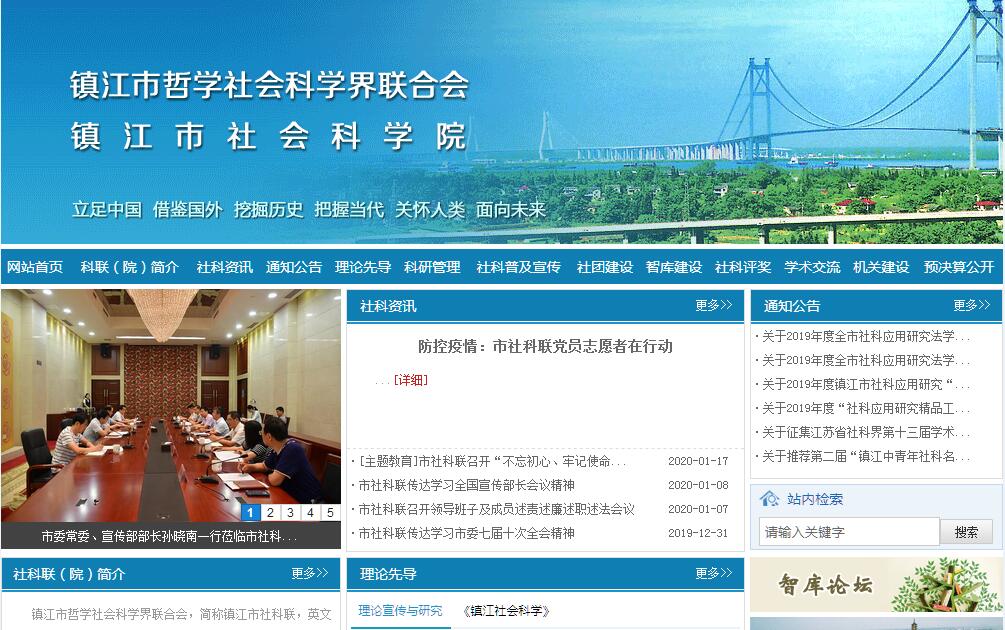 本会定名为“镇江市哲学社会科学界联合会”,简称“镇江市社科联”,英文译名为:ZHENJIANG FEDERATION OF SOCAL SCIENCES CIRCLES,英文缩写为ZJFSSC。镇江市哲学社会科学界联合会是中共镇江市委领导下的、由本市社会科学界的市级学会、协会、研究会及各辖市、区的哲学社会科学界联合会组成的群众性学术团体,是全市各社会科学学术团体的业务主管部门。本会是江苏省哲学社会科学界联合会的团体会员。本会的宗旨是高举中国特色社会主义伟大旗帜,以邓小平理论和“三个代表”重要思想为指导,深入贯彻落实科学发展观,贯彻执行党的“一个中心、两个基本点”的基本路线,坚持为人民服务、为社会主义服务的方向,坚持“百花齐放、百家争鸣”的方针,团结全市社会科学工作者,发扬理论联系实际的学风,积极开展各种学术活动,繁荣和发展全市的哲学社会科学事业,为党和人民事业发挥思想库作用,为镇江科学发展、跨越发展服务。本会的主要任务:1、积极组织全市哲学社会科学工作者认真学习、宣传、贯彻党的基本理论、基本路线、方针政策和基本纲领、基本经验;2、积极反映社会科学工作者的要求,维护会员的正当权益,在加强党和政府与社会科学工作者的联系方面发挥桥梁纽带作用,努力促进全市社会科学工作者的团结;3、依法组织、协调、管理所属社科类社团开展工作,指导辖市(区)社科联开展工作,促进学术团体之间、学科之间的协作;4、组织、协调学术研究和应用对策研究,开展学术交流;5、开展社会科学知识普及宣传工作,开展咨询服务及各种智力开发工作,促进社会科学研究成果向现实生产力转化;6、建立社会科学人才培养、激励机制,受市委、市政府委托,定期开展社会科学优秀成果的评选活动,对优秀成果的作者给予精神鼓励和物质奖励;7、办好《镇江社会科学》,编印有关参考资料;8、加强省内外学术团体的横向联系与合作,不断拓宽信息交流的渠道和领域,做好学术交流工作;9、完成市委市政府交办的其他任务。