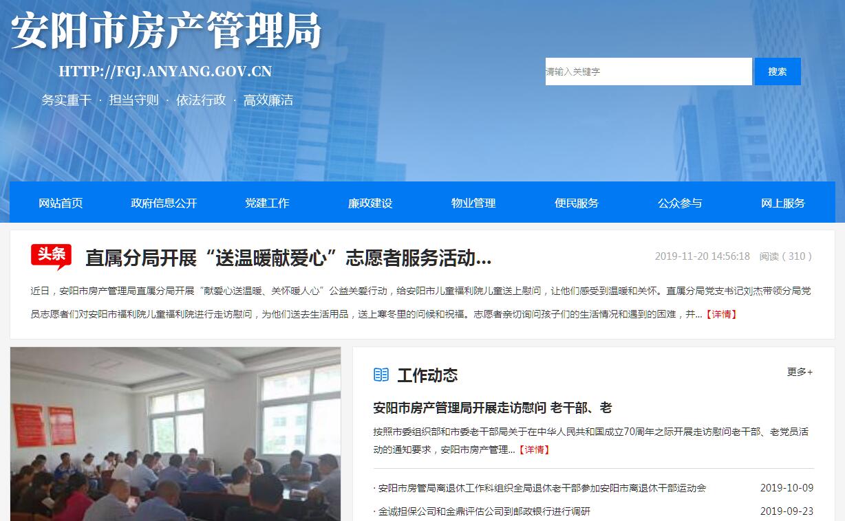 安阳市房产管理局的主要任务是:贯彻执行有关房产业的法律、法规和政策,制订本市房产业管理的办法,负责房产业的行业管理;研究制订本市房产业的中长期规划,编制住宅建设计划和发展规划,并组织实施。负责全市住房制度改革工作;研究拟定全市有关住房制度改革的具体政策和实施办法。负责房改资金的政策指导并监督使用。负责市区国有土地、集体土地上房屋权属登记、房屋转移权属登记、房屋他项权利登记等《房屋登记办法》确定的登记种类和房屋测绘、房产档案资料的管理、利用。负责市区商品房预售管理和商品房买卖合同备案工作。负责全市房地产市场的统计分析,为房地产业的发展和政府决策提供科学依据。负责房地产评估、经纪、咨询等中介服务的管理;负责房地产中介服务组织的资质管理和中介服务人员资格认证工作;会同有关部门对房地产价格实施调控和管理。负责对直管公房的出租、出售和调换工作;负责直管公房的经营管理和资产置换工作。负责贯彻执行国家、省、市有关房屋维修资金管理的方针、政策和法律规章;负责市区房屋维修资金的建立、归集及使用审批监管;负责市区房屋维修专项资金的管理工作;监督指导房屋维修资金的使用。负责城市房屋安全鉴定和管理,指导和规范全市房屋修缮管理工作;参与危旧房改造及城市房屋拆迁管理工作。负责住宅小区物业管理的行业管理和物业服务机构的资质管理。负责房产政策管理系统、房产登记系统、房产预警预报系统,房产地理信息系统的建设、管理维护和使用;负责房产信息的收集、传递、发布。