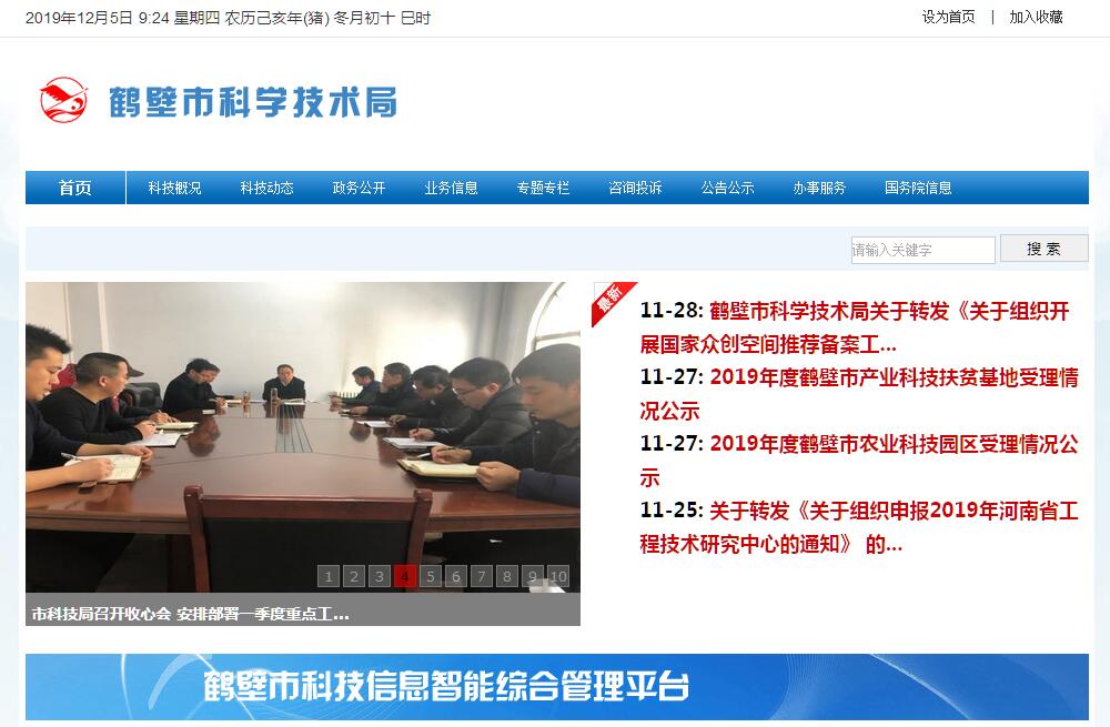 鹤壁市科学技术局是市政府工作部门,为正处级。鹤壁市科学技术局内设科室7个,分别为:办公室,发展规划和资源配置科,政策法规和基础研究科,高新技术和区域创新科,农业和社会发展科技科,科技人才和成果转化科,外国专家服务和智力引进科。鹤壁市科学技术局局属事业单位3家,分别是:鹤壁市科学技术情报研究所,鹤壁市科技发展促进中心,鹤壁市科技创新服务中心。鹤壁市科学技术局贯彻落实党中央关于科技创新工作的方针政策和决策部署,在履行职责过程中坚持和加强党对科技创新工作的集中统一领导。其主要职责是:(一)贯彻执行国家科技工作法律、法规和方针、政策,牵头拟订创新驱动发展、科技发展、引进国外智力的规划和政策措施,并组织实施。(二)编制市重大科技项目规划并监督实施,统筹关键共性技术、前沿引领技术、现代工程技术、颠覆性技术研发,牵头组织重大技术攻关和成果应用示范。(三)建立统一的科技管理信息系统和科研项目资金协调、评估、监管机制。会同有关部门提出优化配置科技资源的政策措施建议,推动多元化科技投入体系建设。会同有关部门统筹管理市级财政科技计划(专项、基金等)并监督实施。促进科技金融紧密结合。(四)统筹推进自主创新体系建设和科技体制改革。会同有关部门健全技术创新激励机制,优化科研体系建设,指导科研机构改革发展。推动企业科技创新能力建设,推进重大科技决策咨询制度建设,承担推进科技军民融合发展相关工作。拟订科技普及和科学传播规划、政策。(五)拟订全市基础研究规划、政策并组织实施,组织协调重大基础研究和应用基础研究。拟订重大科技创新基地建设规划并监督实施,参与编制重大科技基础设施建设规划和监督实施,牵头组织重点实验室等创新平台建设,推动科研条件保障建设和科技资源开放共享。(六)负责科技监督评价体系建设和相关科技评估管理,推进科技评价机制改革,统筹科研诚信建设。组织实施创新调查和科技报告制度,指导全市科技保密工作。(七)组织拟订高新技术发展及产业化、科技促进农业农村和社会发展的规划、政策和措施。组织开展重点领域技术发展需求分析,提出关键核心技术需求并监督实施。指导科技创新创业载体平台建设。支持安全生产等领域的科学技术研究。(八)统筹区域科技创新体系建设。指导高新技术产业开发区等建设。协调推动创新型城市建设,推动开展创新政策先行先试和体制机制改革创新。承担科技扶贫相关工作。(九)负责全市对外科技合作与交流工作。(十)牵头全市技术转移体系建设,拟订科技成果转移转化和促进产学研结合的相关政策措施并监督实施。(十一)会同有关部门拟订全市科技人才队伍建设规划和政策措施,组织实施相关科技人才计划。承担两院院士培育和支持等工作,负责组织实施科学家工作室、院士工作站建设管理。(十二)负责全市科学技术奖励相关工作。(十三)负责引进国外智力和全市出国(境)培训工作。(十四)完成市委、市政府交办的其他任务。