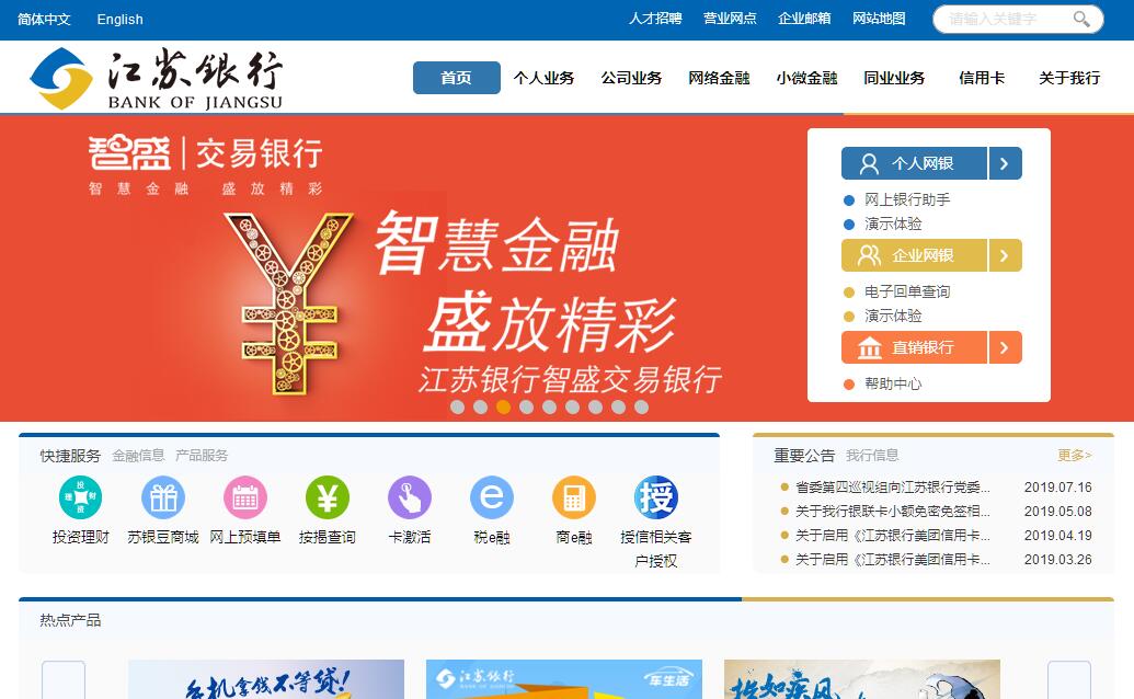 江苏银行是在江苏省内无锡、苏州、南通等10家城市商业银行基础上,合并重组而成的现代股份制商业银行,开创了地方法人银行改革的新模式。江苏银行于2007年1月24日正式挂牌开业,是江苏省内最大的法人银行。江苏银行秉承“融创美好生活”的使命,在“融合创新、务实担当、精益成长”的企业文化为引领下,致力于建设“特色化、智慧化、综合化、国际化”一流上市银行。截至2017年末,资产总额达1.77万亿元,各项存款总额达10078亿元,各项贷款总额达7473亿元。江苏银行下辖13家省内分行、4家省外分行,服务网络辐射长三角、珠三角、环渤海三大经济圈,实现了江苏省内县域全覆盖。营业网点538家,员工1.4万余人。发起设立了苏银金融租赁公司和丹阳保得村镇银行。2016年8月2日,在上海证券交易所主板上市,股票代码600919,目前已被纳入MSCI指数。江苏银行的发展得到了社会各界的肯定,获得江苏省委省政府“江苏省优秀企业”、银监会“全国银行业金融机构小微企业金融服务先进单位”、《金融时报》“最具竞争力中小银行”“最具创新力银行”等多项荣誉称号。在英国《银行家》杂志2018年度全球1000强银行排名中,按一级资本列91位,进入全球银行百强,国内排名第17位。被美国《环球金融》杂志评为中国最佳城市商业银行。