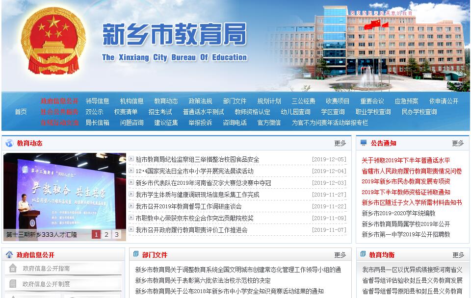 新乡市教育局主要职责:(一)贯彻落实国家、省教育改革与发展的方针、政策和规划,起草全市教育发展的有关政策、规定和制度并监督实施;负责教育理论研究和宣传工作。(二)负责全市各级各类教育的统筹规划和协调管理;制定全市教育改革发展战略和教育事业发展规划;指导各级各类学校的教育教学改革;负责全市教育基本信息的统计、分析和发布。(三)负责本部门教育经费的统筹管理,参与拟订教育经费筹措、教育拨款、教育基建投资的政策;负责统计全市教育经费投入情况和教育系统的内部审计工作。(四)按照省、市确定的教育经费“三个增长”机制,督促检查各县(市)、区和有关部门贯彻落实;会同有关部门制定教育拨款、教育基建投资等多渠道筹措教育经费的政策和措施;会同有关部门管理国内外教育贷款和赠援款。(五)负责推进全市义务教育均衡发展和促进教育公平,负责义务教育的宏观指导与协调;指导普通高中教育、学前教育和特殊教育工作;落实基础教育教学基本要求和教学基本文件,组织审定基础教育教学的地方性教材和补充教材,全面实施素质教育;组织对中等及中等以下教育、扫除青壮年文盲工作的督导检查和评估验收工作;负责基础教育发展水平、质量的监测工作。(六)负责全市教育督导与评估。指导全市教育督导工作,落实教育督导各项规章制度和标准,完善督政、督学评价体系,加强督导结果运用,督促提升教育发展水平。(七)指导以就业为导向的职业教育的发展与改革,落实中等职业教育专业目录、教学指导文件和教学评估标准;负责中等职业教育教材选定、发放和毕业生就业指导等工作。(八)参与管理全市各类高等教育,促进校地合作发展;指导、协调各县(市、区)以及各部门的教育工作。(九)指导全市各级各类学校的思想政治工作、德育、体育、卫生、艺术教育与国防教育工作;负责所属学校的党建和稳定工作;负责教育局管理权限内的干部管理;协助有关部门做好教育系统的纪检、监察、审计、统战和群团工作。(十)主管全市教师工作。负责全市各级各类学校教师资格制度实施;负责教育系统的表彰奖励,归口管理教师和教育管理人员继续教育;配合有关部门研究提出各级各类学校编制标准;指导各级各类学校内部人事与分配制度改革;指导全市教育系统人才队伍建设。(十一)负责局机关和所属单位的机构编制、人事管理、岗位管理、劳动工资等工作;统筹规划并指导全市各级各类学校教职工队伍建设工作。(十二)负责市属中小学校招生计划的制定、下达并组织指导实施;按规定权限做好全市中等专业学校招生工作;会同有关部门改革师范类院校毕业生就业制度。(十三)负责管理全市教育系统科研工作,组织所属有关单位承担国家和省、市科研项目并协调实施;规划、指导并推动全市教育系统的社会科学和自然科学研究,指导高新技术产业科研成果转化工作;规划并管理全市教育管理情报、统计资料及信息的开发和建设工作;负责教育系统信息化建设。(十四)组织指导教育方面的对外交流与合作;负责承办国家公费出国留学人员派出的有关事宜;负责教育系统外事工作。(十五)落实国家语言文字工作的方针、政策,制定语言文字工作规划;负责普通话推广和普通话师资培训工作。(十六)管理局属事业单位;指导教育学会、协会、基金会等社团工作。(十七)承办市政府交办的其他事项。