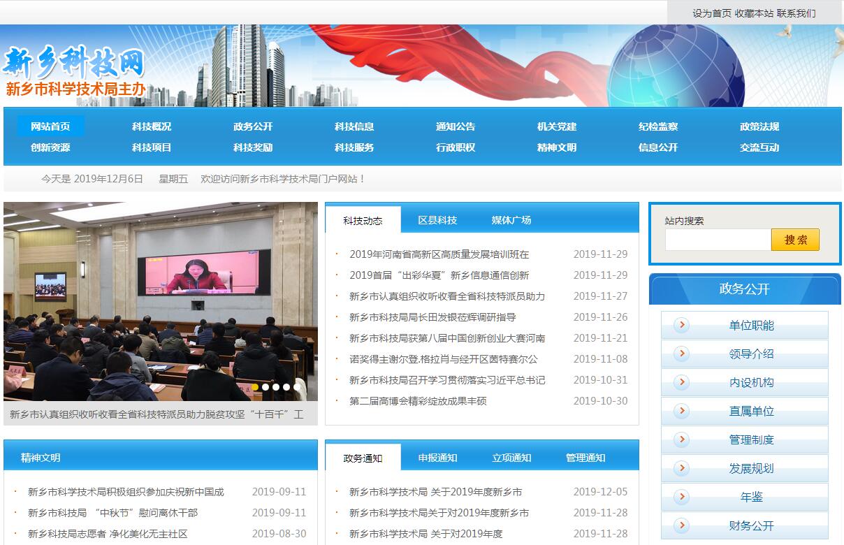 新乡市科学技术局主要职责:(一)贯彻执行国家、省科技工作的法律、法规和方针、政策;提出全市科技发展战略的建议;牵头拟订激励自主创新的政策措施并组织实施和监督。(二)牵头拟订全市科学和技术发展规划、年度计划;确定全市科技发展的布局和优先发展领域;负责《新乡市中长期科学和技术发展规划纲要》的实施;会同有关部门推进全市创新驱动发展战略实施。(三)提出全市科技体制改革的政策和重大措施建议,推进全市科技创新体系建设和科技体制改革工作;审核科研机构的组建和调整,优化科研机构布局。(四)组织制定多渠道增加科技投入的政策措施;会同有关部门统筹管理科技投入,并提出科技资源合理配置的重大政策和措施建议,优化科技资源配置;拟订科技金融结合的政策措施,会同有关部门指导科技投融资工作;负责归口统一管理科技经费的预决算。(五)制定推动全市应用基础研究、前沿技术研究、社会公益技术研究及产业发展关键和共性技术研究等方面的政策措施;组织全市经济社会发展重要领域的重大关键技术攻关;负责全市科技计划的制定与组织实施;负责全市科技计划指南的制定并组织实施。(六)负责全市高新技术发展及产业化工作。会同有关部门拟订高新技术产业化政策,推进市高新技术发展及产业化工作;指导市级高新技术产业开发区建设;牵头拟订高新技术出口的相关政策措施。(七)会同有关部门拟订促进产学研结合的政策措施;制定科技成果转化和产业化政策,指导科技成果转化工作,组织相关重大科技成果应用示范;组织实施市级重大科技专项和科技型中小企业技术创新以及科技成果转化等计划项目。(八)负责全市科技基础能力建设。提出全市科研条件保障规划和政策建议;负责全市科技基础条件平台、科技服务平台和企业技术创新科技支撑平台建设工作;会同有关部门加强科技基本建设;负责科技创新基地的规划布局、指导和监督;拟订全市科技服务业政策措施,推动科技服务业发展。(九)负责全市科技奖励工作;会同有关部门拟订科技人才队伍建设规划,提出相关政策建议;负责全市创新型科技人才、科技领军人才队伍和创新型科技团队建设;研究提出充分发挥科技人员积极性、创造科技人才成长良好环境的相关政策、措施。(十)拟订全市对外科技合作与交流的政策、计划;负责全市对外及涉港澳台地区科技合作与交流事宜;组织实施国际科技合作计划;受市政府委托,负责全市国际科技合作与交流、培训等日常管理工作。(十一)拟订全市科学技术普及工作规划,指导全市科普工作;负责科技中介服务体系建设的总体规划、监督指导;统筹规划、指导全市民营科技企业和科技类民办非企业单位发展。(十二)拟订全市科技促进农村和社会发展的政策措施,研究解决农村和社会发展中的重大科技问题。(十三)承办市政府交办的其他事项。