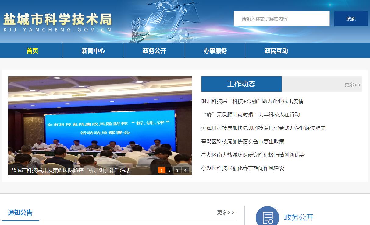 盐城市科学技术局,为市政府工作部门。其主要职责是:(一)牵头拟订科技发展规划和政策,起草相关地方性政策措施草案并组织实施和监督检查。(二)负责编制和组织实施基础研究、科技支撑等各类科技计划,负责统筹协调基础研究、前沿技术研究、重大社会公益性技术研究及关键技术、共性技术研究,牵头组织国民经济与社会发展重要领域的重大关键技术攻关,负责本级科技部门经费预决算及经费使用的监督管理。(三)提出科技体制改革的政策和措施建议,推进科技体制改革工作和区域创新体系建设。(四)指导重大研发机构、重点实验室、科技公共服务平台、企业院士工作站等科技基础设施的建设,提出科研条件保障的规划和政策建议,推进科技基础条件平台建设和科技资源共享,审核相关科研机构的组建和调整,优化科研机构布局。(五)会同有关部门拟订高新技术发展及其产业化的政策措施,指导高新技术产业开发区、高新技术特色产业基地等各类科技创新创业载体的建设。(六)牵头拟订促进产学研结合的政策措施,指导科技成果转化工作,会同有关部门拟订激励企业创新的政策措施,推动企业自主创新能力建设。(七)组织拟订科技促进农村和社会发展的政策措施,组织实施现代农业科技创新工作,指导科技示范推广基地的建设,促进以改善民生为重点的农村建设和社会建设。(八)负责科学技术奖评审的组织工作,会同有关部门拟订科技人才队伍建设规划,提出相关政策建议。(九)制定科普规划和政策,拟订促进技术市场、科技中介组织发展政策,制定科技保密管理办法,负责相关科技评估管理和科技统计管理。(十)制定科技合作和交流的政策措施,组织开展国际技术转移工作,根据市政府授权,承办全市对外科技交流合作中有关团组、人员出国(境)审批事项。(十一)贯彻实施国家、省有关专利及知识产权的法律法规,组织拟订、实施全市专利及知识产权工作规划;负责全市专利执法工作;协调有关部门组织知识产权联合执法;负责政府财政资金资助项目的知识产权的宣传教育与培训工作;负责全市专利代理人的业务培训、考核工作。(十二)承办市政府交办的其他事项。