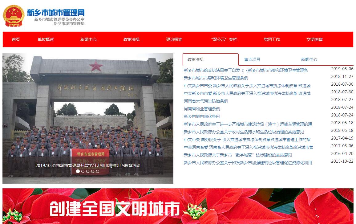 新乡市城市管理局主要职责:(一)贯彻执行国务院、省政府有关城市管理方面的法律、法规和政策,组织制定全市市容环境卫生长远规划和年度计划;拟订城市市容和环境卫生管理的具体办法,报市政府批准后组织实施;参与制定城市总体规划中环境卫生专业规划;负责全市城市管理工作的规划、计划、组织协调、监督检查。(二)负责城市环境容貌治理、环境卫生、户外广告、建筑垃圾、城管监察的综合管理。负责对城市生活垃圾、建筑垃圾处理的指导、协调和管理工作;负责组织全市性城市管理综合治理,对各区政府及市直有关单位市容环境卫生工作进行监督、检查和指导。(三)负责全市市容环境卫生行政执法工作的综合管理、指挥协调、监督检查、教育培训、考核评价,按照城市管理的需要制定不同时期工作目标和政策。(四)负责对市区环境卫生设施拆迁、建筑垃圾清运处置及对从事城市生活废弃物收集、运输、清扫、处置专业的单位、个人的资质进行审查和监督管理;负责对市区范围内户外广告设置的审批和管理。(五)负责全市环卫专项资金的计划、监督、使用和管理。负责环卫任务量的核定,维修养护管理经费的定额使用和管理;负责环卫设施维修养护管理作业市场的综合管理和维修养护队伍的资质审查;负责协调、组织、监督环卫养护作业任务的招标、管理、质量检查和考核工作;负责环卫对外经济技术合作和股权融资、项目引资工作。(六)贯彻国家、省有关实施数字化城管的规定、标准,拟订本市实施数字化城管的实施方案和制度,并组织实施;负责对数字化城管工作的指导、协调和监督考核;承担市城市管理委员会办公室的日常工作。(七)对各县(市)、区的城市管理工作进行业务指导、组织协调、监督检查。(八)完成市政府交办的其他事项。