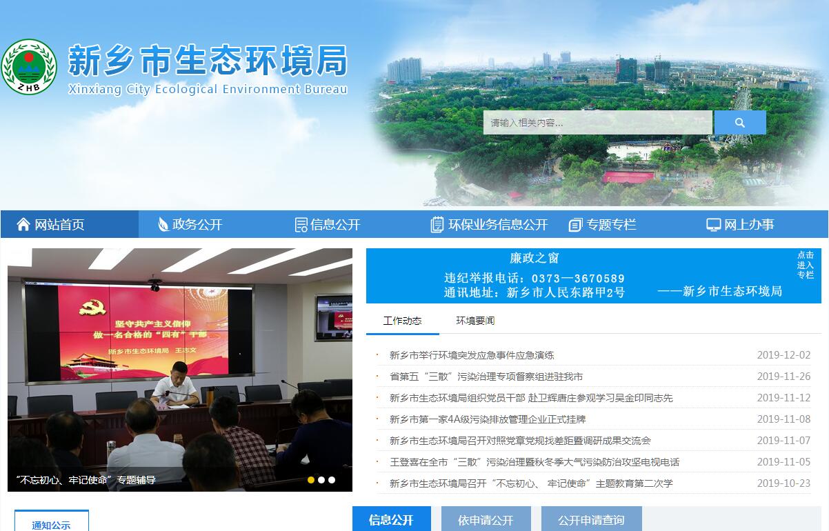 新乡市生态环境局主要职责:(一)贯彻执行国家、省环境保护的法律、法规和方针、政策。拟订并组织实施全市环境保护政策、规划及管理制度,制定规范性文件;负责贯彻执行各类环境保护地方标准、基准和技术规范;组织编制全市环境功能区划;组织拟订并监督实施全市重点区域、流域污染防治规划和饮用水水源地环境保护规划;参与制定新乡市主体功能区划。(二)负责全市重大环境问题的统筹协调和监督管理。牵头协调重特大环境污染事故和生态破坏事件的调查处理,指导、协调县(市)、区政府重特大突发环境事件应急、预警工作;协调解决有关跨区域环境污染纠纷,统筹协调重点流域、区域污染防治工作。(三)承担落实国家、省和市政府减排目标责任。组织制定主要污染物排放总量控制和预算、主要污染物排污权有偿使用和交易、排污许可证等制度并监督实施,提出实施总量控制的污染物名称和控制指标;督查、督办、核查各县(市)、区污染物减排任务完成情况;负责环境保护责任目标、总量减排考核并公布考核结果;负责环境统计和污染源普查工作。(四)负责提出环境保护领域固定资产投资规模和方向、市财政性资金安排意见,按市政府规定权限审批、核准市规划内及年度计划规模内固定资产投资项目,并配合有关部门做好组织实施和监督工作;参与指导和推动循环经济和环保产业发展;参与应对气候变化工作。(五)承担从源头上预防、控制环境污染和环境破坏责任。受市政府委托对全市重大经济和技术政策、发展规划以及重大经济开发计划进行环境影响评价,按国家和省、市规定审批重大开发建设区域、项目环境影响评价文件。(六)负责全市环境污染防治的监督管理。制定水体、大气、土壤、噪声、光、恶臭、固体废物、化学品、机动车等污染防治管理制度并组织实施;会同有关部门监督管理饮用水水源地环境保护工作;组织指导城镇和农村环境综合整治工作。(七)指导、协调、监督全市生态保护工作。拟订生态保护规划,组织评估生态环境质量状况,监督对生态环境有影响的自然资源开发利用活动、重要生态环境建设和生态破坏恢复工作;指导、协调、监督全市自然保护区、风景名胜区、森林公园环境保护工作,协调和监督野生动植物保护、湿地环境保护、荒漠化防治等工作;协调、指导农村生态环境保护;监督生物技术环境安全,牵头生物物种(含遗传资源)工作,组织协调生物多样性保护。(八)负责全市核安全和辐射安全的监督管理。实施国家和省有关政策、规划、标准,参与核事故应急处理,负责辐射环境事故应急处理工作;监督管理核设施和放射源安全及核设施、核技术应用、电磁辐射、伴有放射性矿产资源开发利用中的污染防治;配合做好核设施安全、核材料管制和民用核安全设备的监督管理工作。(九)负责环境监测和信息发布。执行国家、省环境监测制度和规范,组织实施环境质量监测和污染源监督性监测;组织对环境质量状况进行调查评估、预测预警,组织建设和管理市环境监测网和全市环境信息网,建立和实行环境质量公告制度,统一发布全市环境质量报告和重大环境信息。(十)开展环境保护科技工作,组织环境保护重大科学研究和技术工程示范,推动环境技术管理体系建设;参与组织协调全市有关环境保护国际交流与合作事务。(十一)组织、指导和协调环境保护宣传教育工作。制定并组织实施新乡市环境保护宣传教育纲要,开展生态文明建设和环境友好型社会建设的有关宣传教育工作,推动社会公众和社会组织参与环境保护。(十二)承办市政府交办的其他事项。