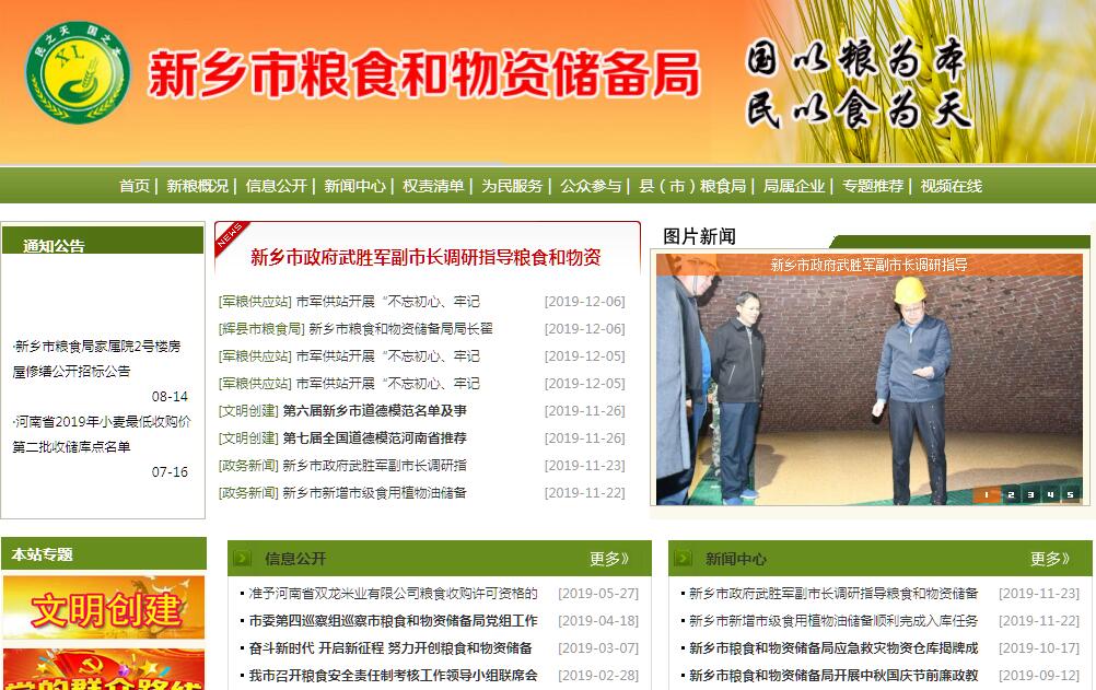 新乡市粮食和物资储备局主要职责:(一)贯彻执行国家粮食流通和粮油储备的方针、政策及法律、法规,研究提出现代粮食流通产业发展战略的建议,拟定全市粮食流通体制、地方粮油储备管理体制、国有粮食企业改革方案及管理规章,并监督执行。(二)研究拟定并组织实施全市粮食调控和地方粮油储备中长期规划、粮油总量流通宏观平衡计划,承担粮油监测预警、应急和市级储备粮油行政管理责任,研究提出动用市级储备粮油的原则和建议。(三)负责全市粮油收购资格的核查、管理工作,指导协调最低收购价政策性粮食购销工作,指导全市军粮供应和粮食产销合作活动;研究拟定市级储备粮油规模、总体布局和收购、销售计划,审批市级储备粮油轮换计划并监督实施。(四)制定全市粮食流通监督检查制度。监督检查《粮食流通管理条例》及国家有关政策的贯彻落实、市级储备粮油数量、质量和储存安全情况,监督检查粮食经营者从事粮食收购、储存、运输、政策性用粮购销活动,以及执行国家粮食流通统计制度情况。(五)负责全市粮食流通市场体系建设和科技进步、技术创新、产业升级工作、制定全市粮油加工业发展规划,指导粮油加工行业管理和质量、计量、标准管理、监督工作,配合有关部门打击粮油商品生产经营中的假冒伪劣行为。(六)指导行业利用外资、引进技术设备及对外经济技术合作与交流工作;制定全市粮油仓储、加工等流通设施建设规划和技术管理办法,并组织实施;管理粮食流通设施市级投资项目。(七)指导全市粮食系统财务和内部审计工作;指导全市国有粮食企业改革工作;负责市粮食局直属企事业单位的财务和内部审计工作,监管市粮食局直属企事业单位的国有资产。(八)拟订并监督执行全市粮食流通和市级储备粮油管理的政策法规及规范性文件;拟订市粮油质量检验制度及有关技术规范;按照有关规定,审批市级储备粮代储企业资格。(九)指导全市粮食产业化经营、多种经营、连锁经营、“三产”发展、主食厨房工程、放心粮油工程、农村社会化服务体系建设工作;负责培育发展全市粮油食品产业化龙头企业。(十)负责全市粮食系统职业道德教育、政风、行风建设及精神文明建设;指导行业安全生产、信访稳定工作;管理市粮食行业协会、经济学会等社团组织。(十一)负责局机关及直属单位的人事、机构编制管理;组织实施全市粮食系统教育发展规划,指导行业教育培训工作。(十二)负责全社会粮食流通统计、粮油产业、粮油基础设施建设统计及粮油价格信息监测工作。(十三)指导各县(市、区)各项粮食业务工作、监督检查依法治粮工作。(十四)承担市政府交办的其他事项。