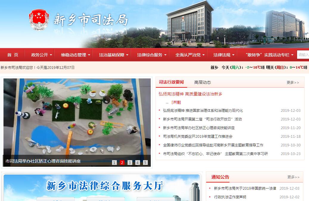新乡市司法局主要职责:(一)承担全面依法治市重大问题政策研究,协调有关方面提出全面依法治市中长期规划建议,负责有关重大决策部署督察工作。(二)承担统筹规划立法工作责任。协调有关方面提出市政府立法规划和年度立法工作计划建议。负责跟踪了解各部门对立法工作计划的落实情况,加强组织协调和督促指导,研究提出立法与改革决策相衔接的意见、措施。负责面向社会征集地方性法规、规章制定项目建议。(三)负责起草或者组织起草有关重要的地方性法规、规章草案。负责对与群众利益密切相关的地方性法规、规章草案面向社会公开征求意见。审查报送市政府的地方性法规、规章草案,向市政府报告审查、修改意见。负责立法协调工作。(四)承担市政府规章向国务院、省人大常委会、省政府、市人大常委会备案工作。承担政府规范性文件向省政府和市人大常委会备案工作。承担县(市)、区政府和市政府各部门规范性文件备案审查工作。负责市政府规章的立法解释、立法后评估工作。负责市政府规章清理、编纂工作,指导全市规范性文件清理工作。(五)承担统筹推进法治政府建设责任。负责推进全市依法行政、建设法治政府方面的统筹规划、综合协调、督促指导、考核评价工作。指导监督市政府各部门和县(市)、区政府依法行政工作。(六)负责综合协调、指导监督全市行政执法工作。研究完善规范行政执法有关制度,推进严格规范公正文明执法。负责推进服务型行政执法建设,全面落实行政执法责任制。承担推进行政执法体制改革有关工作。负责全市行政执法主体和行政执法人员资格管理。负责指导行政裁决工作。(七)承担市政府交办的法律事务。负责市政府涉法重大决策和重要事务合法性审查,负责对以市政府名义制发的规范性文件的合法性审查。推进全市法律顾问工作。(八)承担统筹规划法治社会建设责任。负责拟订全市法治宣传教育规划,组织实施普法宣传工作。推动人民参与和促进法治建设。指导全市依法治理和法治创建工作。指导全市人民调解、行政调解、行业性专业性调解工作和人民陪审员、人民监督员选任管理工作。推进司法所建设。(九)负责拟订全市公共法律服务体系建设规划并指导实施。统筹和布局全市城乡、区域法律服务资源。指导监督全市律师、司法鉴定、公证、仲裁和基层法律服务管理工作。监督管理全市法律援助工作。负责全市国家统一法律职业资格考试组织实施工作。(十)负责市属监狱管理工作。监督管理市属监狱刑罚执行、罪犯改造等工作。监督管理全市社区矫正工作,指导社会力量和志愿者参与社区矫正工作。监督指导刑满释放人员安置帮教工作。(十一)负责市司法行政系统强制隔离戒毒场所和戒毒康复场所管理工作。指导监督全市司法行政系统强制隔离戒毒措施执行和戒毒康复工作。对社区戒毒和社区康复工作提供指导、支持和协助。(十二)指导监督全市司法行政系统财务、装备、设施、场所建设等保障工作。负责全市司法行政系统警务装备的管理工作。(十三)指导监督全市司法行政系统队伍建设。负责全市司法行政系统警务管理和警务督察工作。协助县(市)、区管理司法局领导干部。(十四)完成市委、市政府交办的其他任务。