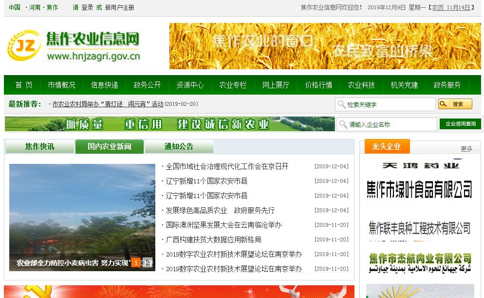 2018年12月22日,焦作市机构改革方案发布,组建焦作市农业农村局。将市委农村工作办公室、市农业局的职责,以及市发展和改革委员会的农业投资项目、市财政局的农业综合开发项目、市国土资源局的农田整治项目、市水利局的农田水利建设项目管理职责等整合,组建市农业农村局,作为市政府工作部门。市委农村工作领导小组办公室设在市农业农村局。市农业农村局挂市扶贫开发办公室牌子。不再保留市委农村工作办公室、市农业局。其主要职责是:(一)拟订全市种植业、渔业、乡镇企业、农垦等农业有关产业(以下简称农业)和农村经济发展政策、发展战略、中长期发展规划并组织实施;起草农业和农村经济的规范性文件,推进农业依法行政。(二)承担完善全市农村经营管理体制的责任。提出稳定和完善农村基本经营制度的政策建议,指导农村土地承包、耕地使用权流转和承包纠纷仲裁管理;指导、监督减轻农民负担和村民筹资筹劳管理工作,指导农村集体资产和财务管理;拟订农业产业化经营的发展规划与政策并组织实施;指导、扶持农业社会化服务体系、农村合作经济组织、农民专业合作社和农产品行业协会的建设与发展。(三)指导全市粮食等主要农产品生产,组织落实促进粮食等主要农产品生产发展的相关政策措施,引导农业产业结构调整和产品品质的改善;会同有关部门指导农业标准化、规模化生产;负责提出全市农业固定资产投资规模和方向、财政性资金安排的意见,按市政府规定权限审批、核准市规划内和年度计划规模内固定资产投资项目;编报部门预算并组织执行。提出扶持农业农村发展的财政政策和项目建议,与市财政部门协商并共同组织实施;拟订农业开发规划并监督实施;配合市财政部门组织实施农业综合开发项目。(四)促进农业产前、产中、产后一体化发展,组织拟订全市促进农产品加工业发展政策、规划并组织实施;提出农业产业保护政策建议;指导农产品加工业结构调整、技术创新和服务体系建设;组织拟订大宗农产品市场体系建设与发展规划,提出促进大宗农产品流通的政策建议和主要农产品的进出口建议;提出全市农业经济结构调整的意见、规划并组织实施。(五)承担提升全市农产品质量安全水平的责任。负责农产品质量安全监测,依法开展农产品质量安全风险评估,发布有关农产品质量安全状况信息;提出技术性贸易措施的建议;参与制定农产品质量安全标准并会同有关部门组织实施;指导农业检验检测体系建设和机构考核;依法实施符合安全标准的农产品认证和监督管理;组织监督管理农产品质量安全。(六)组织、协调全市农业生产资料市场体系建设。依法开展对农作物种子(种苗)、农药的许可及监督管理;依法负责对渔船、渔机、网具的监督管理;拟订有关农业生产资料地方标准并会同有关部门监督实施;负责对有关肥料的监督管理。(七)负责全市农作物重大病虫害防治。指导植物防疫和检疫体系建设;组织、监督全市植物的防疫检疫工作,发布疫情并组织扑灭;组织植物检疫性有害生物普查。(八)承担农业防灾减灾的责任。监测、发布农业灾情,提出生产救灾资金安排建议,指导紧急救灾和灾后生产恢复。(九)负责全市农业信息体系建设,监测分析农业和农村经济运行,开展相关农业统计,发布农业和农村经济信息,指导农业信息服务工作。(十)拟订全市农业科技、教育、农技推广的规划、计划和有关政策并组织实施;会同有关部门组织全市农业科技创新体系和农业产业技术体系建设,实施科教兴农战略,组织实施农业领域的高新技术和应用技术研究、农业科技成果转化和技术推广;负责农业科技成果管理,指导农技推广体系改革与建设,负责农业植物新品种保护,负责农业转基因生物安全监督管理。(十一)会同有关部门拟订全市农业农村人才队伍建设规划并组织实施,指导农业教育和农业职业技能开发工作,参与实施农村实用人才培训工程;承担农村和贫困乡村劳动力转移就业培训工作,会同有关部门依法实施农业农村人才专业技术资格和从业资格管理。(十二)组织全市农业资源区划工作,指导农用地、渔业水域、宜农滩涂、宜农湿地以及农业生物物种资源的保护和管理,负责水生野生动植物保护工作。拟订全市耕地及基本农田质量保护与改良政策并指导实施,依法管理耕地质量;运用工程设施、农艺、农机、生物等措施发展节水农业;负责渔政监督管理工作。(十三)制定并实施全市农业生态建设规划,指导农村可再生能源综合开发与利用,指导农业生物质产业发展和农业农村节能减排,承担指导农业面源污染治理有关工作;划定农产品禁止生产区域,指导生态农业、循环农业等的发展;负责保护渔业水域生态环境。(十四)承担农业涉外事务,组织全市农业贸易促进和对外经济、技术交流与合作。(十五)组织拟订全市扶贫开发工作政策、规划、年度计划并会同有关部门监督检查执行情况;组织拟订全市扶贫资金分配方案和监督检查扶贫开发资金的使用,会同有关部门审核、批复扶贫开发重大项目,监督、检查项目的实施情况。负责扶贫开发整村推进、连片开发、搬迁扶贫、科技和产业化扶贫工作,指导全市扶贫开发工作重点县、乡、村基础设施和社会公益事业建设,指导协调全市社会扶贫和革命老区扶贫工作。(十六)承办法律