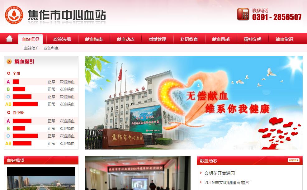 焦作市中心血站始建于1994年10月,是经河南省卫生厅批准执业的全市唯一的采供血机构,肩负着全市六县(市)五区的采供血任务及县(市)级供血库和输血科的业务指导工作。内设献血办、办公室、考核信息科、党办、业务科、财务科、体采一科、体采二科、供血科、成份制备科、检验科、质控科、血型室、科研室、团委、保卫科共16个职能科室。焦作市中心血站建站20年来,在省卫生厅和市政府的领导和支持下,认真贯彻执行省政府提出的“政府领导、属地管理、行业负责、依法办事”的血液工作管理方针,全面落实《献血法》、《血站管理办法》、《临床输血技术规范》等相关法律法规,弘扬求真务实、团结进取的工作作风和与时俱进的创新精神,在社会各界的大力支持和参与下,我市的无偿献血工作始终保持着良好的发展势头。特别是2000年5月实现了计算机血站标准化管理;2000年7月血液安全性指标检测使用了全自动酶免检测技术;2000年9月首次采集并向临床提供机采血小板;2001年下半年,顺利实现了由政府指令性计划无偿献血向街头自愿无偿献血的转变,从此,全市临床用血100%来自街头自愿无偿献血,同年血站顺利通过ISO9001质量管理体系认证; 2003年10月,应用计算机输血管理系统实现了供血库联网,建立了全市供血服务网络;2004年7月1日,启用了献血者指纹识别系统,献血者凭有效身份证件录入指纹后方可献血,当月持身份证登记献血率达100%。2004年8月向临床全面推广“血液去白”业务,提升了临床用血的安全性;2007年3月所制备新鲜冰冻血浆进行100%病毒灭活,再次使我市临床用血安全得到了加强; 2007年4月,血站和唐山现代软件公司联合开发了《临床用血指纹识别交付管理系统》,实行血液三级交付过程管理。取血者凭临床用血申请单核对指纹信息一致后,方可执行血液交付,确保临床安全输血。在充分利用现代科学技术管理手段进行规范化、标准化建设、不断引进新业务、新技术的同时,焦作市中心血站十分注重对采供血业务的科学研究工作,把科研探讨作为引导血站发展的助推器,并取得初步成效。2005年11月,血站的《两种方法检测ABO血型比较》和《洗涤红细胞制备方法改良》两项科研课题,荣获焦作市科技成果。2006年9月,《洗涤红细胞制备方法改良》获焦作市科技成果三等奖。如今,血站已形成覆盖了从血液采集、储存、制备、检测、运输供应整个过程的质量管理体系,成为管理较为科学规范,向着全面建设现代化迈进的血站。建站20年来,无采供血事故发生。作为服务于献血者和受血者服务的窗口单位,血站在搞好采供血服务工作的同时,大力提倡文明新风,积极开展文明单位的创建活动。2007年荣获“省级文明单位”称号。科学规范的管理模式,打造了焦作市中心血站的服务品牌,“捐血献爱心、用血请放心”的理念已深入人心。涌现出了一大批无偿献血先进单位和先进个人,我市连续六次荣获“全国无偿献血先进城市”光荣称号。