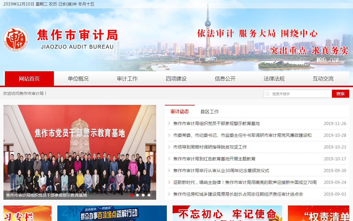 焦作市审计局成立于1983年底,目前设有办公室、组织人事科、法规科(审理科)、计划管理和政策跟踪督察科、财政审计一科、财政审计二科、行政事业审计科、党群政法审计科、科教文卫审计科、农业农村审计科、固定资产投资审计科、企业审计一科(内部审计指导监督科)、企业审计二科、金融审计科、社会保障审计科、经贸和外资运用审计科、经济责任审计一科、经济责任审计二科、计算机信息科、党的建设工作办公室、离退休干部工作科等21个内设机构。下属二级机构为市基本建设工程预决算审计中心,事业性质,副处级单位,不定编制和领导职数,企业化管理,项目审计经费由财政部门按其工作量核拨。其主要职责是:(一)主管全市审计工作。负责对党和国家、省委省政府和市委市政府有关重大政策措施贯彻落实情况进行跟踪审计,对全市财政收支和法律法规规定属于审计监督范围的财务收支的真实、合法和效益进行审计监督,对公共资金、国有资产、国有资源和领导干部履行经济责任情况实行审计全覆盖,对领导干部实行自然资源资产离任及任中审计。对审计、专项审计调查和核查社会审计机构相关审计报告的结果承担责任,并负有督促被审计单位整改的责任。(二)参与起草审计、经济社会发展等方面的地方性法规、规章草案,拟订审计制度并监督执行。拟订并组织实施审计工作发展规划和专业领域审计工作规划,拟订并组织实施年度审计计划。对直接审计、调查和核查的事项依法进行审计评价,作出审计决定或提出审计建议。(三)向中共焦作市委审计委员会提出年度市级预算执行和其他财政收支情况审计报告、审计查出问题整改情况报告和年度审计项目计划等审计重大事项。向市政府提出年度市级预算执行和其他财政收支的审计结果报告和审计查出问题整改情况报告。受市政府委托向市人大常委会提出市级预算执行和其他财政收支情况的审计工作报告、审计查出问题整改情况报告。向中共焦作市委审计委员会和市政府报告其他事项的审计和专项审计调查情况及结果。依法向社会公布审计结果。向市委、市政府有关部门、市辖县(市、区)党委、政府通报审计情况和审计结果。(四)直接审计下列事项,出具审计报告,在法定职权范围内作出审计决定或向有关主管机关提出有关处理处罚建议:1.党和国家、省委省政府和市委市政府有关重大政策措施贯彻落实情况。2.市级预算执行情况和其他财政收支,市委和市政府各部门(含直属单位)预算执行情况、决算和其他财政收支。3.市辖县(市、区)政府预算执行情况、决算和其他财政收支,市级财政转移支付资金。4.使用市级财政资金的事业单位和社会团体的财务收支。5.市级投资和以市级为主要建设项目的预算执行情况和决算,市级重大公共工程项目的资金管理使用和建设运营情况。6.自然资源管理、污染防治和生态保护与修复情况。7.市属国有企业和金融机构、市政府规定的市属国有资本占控股或主导地位的企业和金融机构境内外资产、负债和损益,市委市政府驻外非经营性机构的财务收支。8.市辖县(市、区)政府和市政府管理部门管理,其他单位受市政府及其部门委托管理的社会保障基金、社会捐赠资金及其他有关基金、资金的财务收支。9.国际组织和外国政府援助、贷款项目。10.法律、行政法规和地方性法规规定应由市级审计机构审计的其他事项。(五)按规定对市管领导干部及依法属于市审计局审计监督对象的其他单位主要负责人实施经济责任审计和自然资源资产离任及任中审计。(六)组织实施对财经法律、法规、规章、政策和宏观调控措施执行情况、财政预算管理及国有资产管理使用等与市级财政收支有关的特定事项进行专项审计调查。(七)依法检查审计决定执行情况,督促整改审计查出的问题。依法办理被审计单位对审计决定提请行政复议、行政诉讼或市政府裁决中的有关事项。协助配合有关部门查处相关重大案件。(八)指导和监督内部审计工作,核查社会审计机构对依法属于审计监督对象的单位出具的相关审计报告。(九)与市辖县(市、区)党委、政府共同领导市辖县(市、区)审计机关,依法领导和监督县(市、区)审计机关的业务,组织县(市、区)审计机关实施特定项目的专项审计或审计调查,纠正或责成纠正县(市、区)审计机关违反国家规定作出的审计决定。按照干部管理权限协管县(市、区)审计机关负责人。(十)指导全市审计机关推广信息技术在审计领域应用的相关工作。(十一)完成市委、市政府和市委审计委员会交办的其他事项。