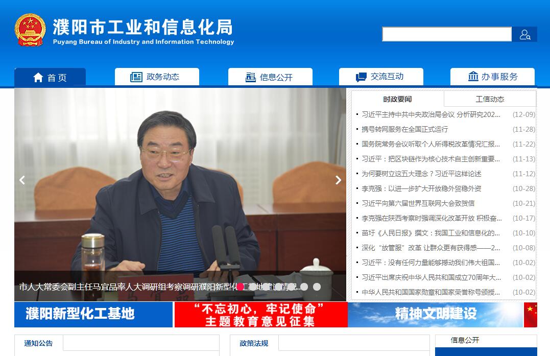 濮阳市工业和信息化局,为市政府工作部门。其主要职责是:(一)提出全市新型工业化发展战略和政策,协调解决新型工业化进程中的重大问题,拟订并组织实施全市工业、信息化的发展规划,推进产业结构战略性调整和优化升级,推进信息化和工业化融合。(二)拟订并组织实施全市工业行业规划、计划和产业政策,提出优化产业布局、结构的政策建议,拟订有关规范性文件,并组织实施行业技术规范和标准,指导行业质量管理工作。(三)监测分析全市工业运行态势,统计并发布相关信息,进行预测预警和信息引导,制订工业经济运行中主要生产要素的年度调度方案并组织实施,协调解决行业运行发展中的有关问题并提出政策建议,负责工业应急管理、产业安全和国防动员有关工作。(四)负责提出全市工业、信息化固定资产投资规模和方向(含利用外资和境外投资)、国家、省对口部门和本市用于工业和信息化财政性建设资金安排的意见,按照国务院、省和市政府规定权限审批、核准国家、省、市规划内和年度计划规模内固定资产投资项目。(五)组织实施国家高技术产业中涉及生物医药、新材料、信息产业等的规划、政策和标准,指导行业技术创新和技术进步,以先进适用技术改造提升传统产业,组织实施国家、省和市有关科技重大专项,推进相关科研成果产业化,推动全市软件业、信息服务业和新兴产业发展。(六)承担全市振兴装备制造业组织协调的责任,组织拟订重大技术装备发展和自主创新规划、政策,依托国家、省和市重点工程建设协调有关重大专项的实施,推进重大技术装备国产化,指导引进重大技术装备的消化创新。(七)拟订并组织实施全市工业、信息化的能源节约和资源综合利用、清洁生产促进政策,参与拟订能源节约和资源综合利用、清洁生产促进规划,组织协调相关重大示范工程和新产品、新技术、新设备、新材料的推广应用。(八)推进全市工业和信息化体制改革和管理创新,提高行业综合素质和核心竞争力,指导相关行业加强安全生产管理。(九)负责全市中小企业发展的宏观指导,会同有关部门拟订促进中小企业发展和非国有经济发展的相关政策、措施并监督检查执行情况;负责中小企业融资服务体系建设,协调解决有关重大问题。(十)统筹推进全市信息化工作,组织制定相关政策并协调信息化建设中的重大问题,促进电信、广播电视和计算机网络融合,指导协调电子政务、电子商务发展,推动跨行业、跨部门的互联互通和重要信息资源的开发利用、共享。(十一)承担相关信息安全管理的责任,负责协调维护全市信息安全和信息安全保障体系建设,指导监督政府部门、重点行业的重要信息系统和基础信息网络的安全保障工作,协调处理信息安全重大事件。(十二)承担煤炭经营许可初审工作。(十三)承办市政府交办的其他事项。