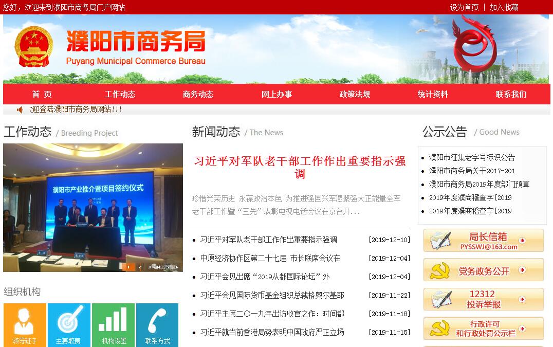 濮阳市商务局,为市政府工作部门。其主要职责是:(一)贯彻落实国家、省有关国内外贸易和国际、国内经济合作方面的法律、法规和方针、政策,拟定全市相应的发展规划以及规定、办法和措施。(二)拟订并组织实施全市商贸流通、对外贸易、国际经济技术合作等商务工作发展战略、规划、年度计划和政策措施,深化商务领域改革,推动全市服务业和经贸产业结构调整。(三)贯彻落实国家、省对外开放的战略和方针、政策,负责全市对外开放的宏观指导和组织协调,拟订全市对外开放长远规划、相关政策措施;研究推进开放带动主战略实施的长效机制;督促检查对外开放政策措施的落实情况,协调解决对外开放工作中出现的重大问题。(四)负责全市市场体系建设工作,拟订全市国内贸易中长期发展规划,指导大宗产品批发市场规划和城市商业网点规划、商业体系建设,推进农村市场体系建设,组织实施农村现代流通网络工程,促进城乡市场体系建设和发展;负责统筹拟订全市流通产业发展规划、促进政策,推进全市流通产业结构调整,指导流通企业改革、流通领域节能降耗、商贸服务业和社区商业发展,推动流通标准化和连锁经营、商业特许经营、物流配送等现代流通方式发展;推动流通品牌建设。(五)拟订并组织实施全市电子商务发展规划和政策措施,积极推进我市电子商务制度建设,大力拓展和深化电子商务应用;贯彻执行国家、省电子商务行业规范和标准,推动电子商务服务体系建设,建立电子商务统计和评价体系;规范电子商务经营行为和流通秩序。(六)承担组织实施全市重要消费品市场调控和重要生产资料流通管理的责任,负责建立健全生活必需品市场供应应急管理机制,监测分析市场运行、商品供求状况,调查分析商品价格信息,进行预测预警和信息引导;按照分工负责重要消费品储备管理和市场调控工作,依法对典当、拍卖、租赁、免税商店、二手车市场、汽车流通和旧货流通业等特殊流通行业进行监督管理;负责研究拟订全市药品流通行业发展规划、政策和相关标准,推进药品流通行业结构调整,指导药品流通企业改革;按有关规定对成品油和酒类等商品的流通进行监督管理。(七)承担牵头协调整顿和规范全市市场经济秩序工作的责任,拟订全市规范市场运行、流通秩序的政策。推动商务领域信用建设,建立市场诚信公共服务平台;负责建设和管理市场经济秩序举报投诉服务网络;会同有关部门开展打击侵犯知识产权、制售假冒伪劣商品、商业欺诈等扰乱市场秩序行为工作;负责全市商务执法工作。(八)组织实施重要工业品、原材料和重要农产品进出口总量计划;牵头负责全市出口基地建设工作,指导贸易促进活动和外贸促进体系建设。(九)负责全市商品进出口管理工作,执行国家对外贸易、进出口管制以及鼓励技术和成套设备进出口政策;依法监督全市技术引进、设备进口、国家限制出口技术工作。(十)执行国家服务业、服务贸易发展方针、政策,拟订我市相关规划和政策措施;承担商贸服务业(批发、零售、餐饮、住宿、沐浴等)的行业管理工作;会同有关部门制定全市促进服务出口和服务外包发展的规划、政策并组织实施,指导服务贸易基地和服务外包平台建设。(十一)负责全市商务系统涉及世界贸易组织相关事务的研究、指导和服务工作;承担组织协调反倾销、反补贴和保障措施及其他与进出口公平贸易相关工作的责任;建立进出口公平贸易预警机制,组织产业损害、反垄断调查,指导协调产业安全应对工作;研究拟定我市反垄断相关政策,指导企业在国外的反垄断应诉工作。(十二)拟订全市外商投资政策、改革方案和发展规划并组织实施;依法审批限额内外商(台港澳侨)投资企业设立、变更、终止事项,依法监督检查外商投资企业执行有关法律、法规、规章、合同章程的情况并协调解决有关问题;统筹规范对外招商引资活动;会同有关部门抓好投资环境治理工作,依法受理、处理境内外投资者的建议和投诉等。(十三)负责全市各类开发区(经济技术开发区、综合保税区、出品加工区等)的宏观管理、政策指导和工作协调。(十四)拟定并执行全市对外经济技术合作政策,依法管理和监督我市对外承包工程、对外劳务合作等工作,执行国家有关中国公民出境就业管理政策,牵头负责外派劳务和境外就业人员的权益保护工作,组织申报市内企业对外投资开办企业(金融企业除外);管理涉及我市多双边无偿援助和赠款(不含财政合作项下外国政府及国际金融组织对中国赠款)等发展合作业务。(十五)组织申报、统筹指导并规范管理以市政府名义在境内外举办或参加的博览会、展销会、交易会和国际性会议等经贸交流活动。(十六)牵头负责国内经济技术合作和区域性经贸交流活动,负责境内招商引资及统计工作。(十七)承办市政府交办的其他事项。