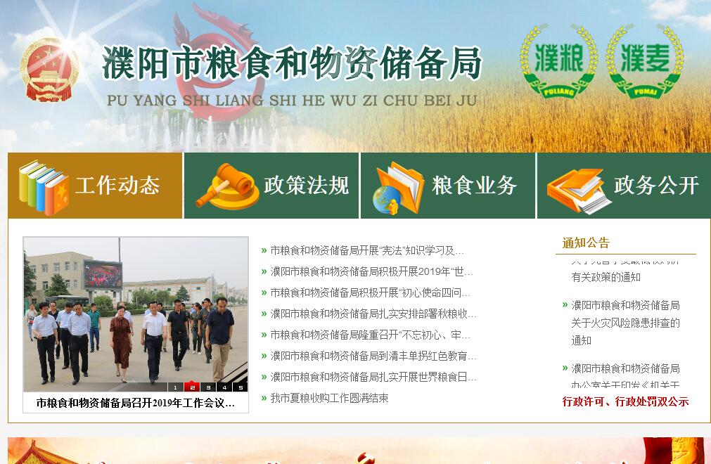 濮阳市粮食和物资储备局主要职责:(一)贯彻执行国家、省粮食流通和浪油储备的法律、法规和方针政策,拟定粮食流通体制和地方粮油储备管理体制改革方案并组织实施。推动国有粮食企业改革,研究提出现代粮食流通产业发展战略的建议。(二)拟定全市粮食流通相关规范文件和政策,会同有关部门研究提出全市粮食流通和地方粮油储备中长期规划的建议。承担粮油监测预警、应急责任,指导协调最低收购价粮食等政策性粮食购销、全市军粮供应和粮食产销合作。(三)负责全市粮食流通监督检查工作。监督检查国家和省市粮食流通、粮油储备有关法律、法规和政策的贯彻落实情况,制定全市粮食流通监督检查制度并组织实施。对粮食收购、储存环节的粮食质量安全和原粮卫生进行监督管理,监督检查粮食经营者从事粮食收购、储存、运输、政策性用粮购销活动,以及执行国家粮食流通统计制度情况。(四)承担市级储备粮油行政管理责任。会同有关部门拟订市级储备粮规模、总体布局和收购、销售计划,提出动用市级储备粮油原则的建议。按照有关规定,审批市级储备粮代储企业资格,审批市级储备粮油轮换计划并监督实施。组织实施并监督指导全市粮油安全储存、调拨和运输管理工作;管理市级储备粮油和代储的中央储备粮油、省储备粮油。(五)负责粮食流通的行业管理,指导粮食流通的科技进步、技术改造和新技术推广。负责全市粮油收购资格审核和核查以及全社会粮食流通统计工作。开展粮食流通的对外合作与交流。(六)指导全市粮食系统产业化经营、多种经营、连锁经营、主食厨房工程和行业安全生产工作。制定粮食系统粮油加工业发展规划,指导粮油加工行业管理和全市粮油质量、计量、标准工作,指导全市粮办工业的经营与民展工作;配合有关部门打击粮油商品生产经营中的假冒伪劣行为。(七)拟定全市粮食市场、物流体系建设与发展规划并组织实施;编制全市粮油流通、仓储、加工设施建设规划,参与管理有关粮食流通设施市级投资项目 ;指导、协调全市粮油收储、销售、加工设施体系建设和利用外资、引进技术工作,组织、指导全市粮油仓库维修改造工作。(八)指导全市粮食系统财务和内部审计工作,负责粮食局直属事业单位财务和内部审计工作,监管市粮食局直属事业单位的国有资产。(九)承办市政府交办的其他事项。
