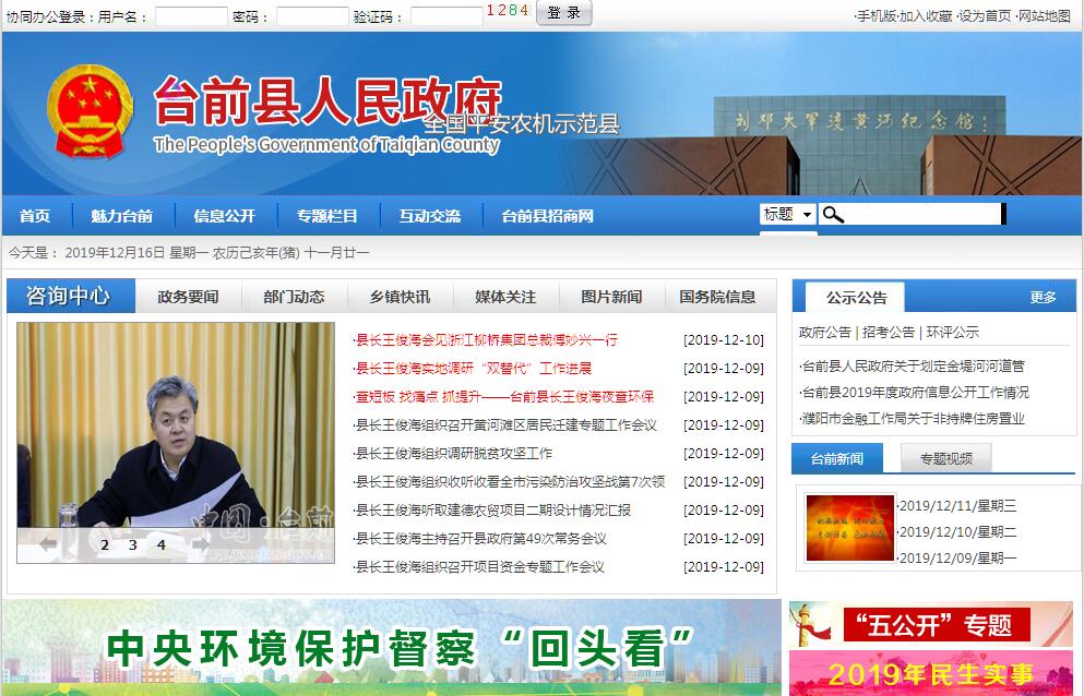 台前县隶属于河南省濮阳市管辖,位于河南省东北部,豫鲁两省交界处,总面积454平方公里,现辖6镇3乡,372个行政村,37.64万人,27万亩耕地。台前县是革命老区、国家扶贫开发工作重点县,是中原经济区濮范台扶贫开发综合试验区的重要组成部分,2012年被命名为“中国羽绒之乡”。地理位置特殊。台前县三面与山东省的6个县(莘县、阳谷、东平、梁山、郓城、鄄城)接壤或隔河相望,东西长40.4千米,南北平均宽15.5千米,是河南省的东北门户。西连中原经济区,东接环渤海经济圈,是河南省距离天津港、青岛港、连云港、日照港最近的一个县。交通优势明显。京九铁路和晋豫鲁铁路通道在此交会,形成铁路交通“十字架”;东西方向的S101和南北方向的S205贯穿全境,形成公路交通“十字架”;范辉高速至台前县城快速通道建成通车;范(县)台(前)梁(山)高速公路开工在即,孙口跨黄河公路大桥正在建设,台前县的交通优势日益显现。资源相对充足。黄河自范县入台前县境,流经台前县境69千米;金堤河从台前县境北部穿城而过汇入黄河,台前县境内长46千米。黄河、金堤河年可利用过境客水1.02亿立方米。境内有探明储量为2.4亿吨的吴坝煤田,五代晋王所筑军垒—晋王城遗址,唐高宗李治访贤的古贤桥,张公艺墓,以及省级重点文物保护单位—刘邓大军渡河处。2014年台前县完成生产总值83.72亿元,年均增长14.1%;人均生产总值达到26146元,2011—2014年,年均增长16.3%;全县一般公共预算收入达到28915万元,全社会固定资产投资63.21亿元,社会消费品零售总额完成28.52亿元,城乡居民储蓄存款余额达到53.47亿元,2011—2014年,分别年均增长38.9%、29.6%、15.9%和26.4%。三次产业结构由2010年的12.4:65.7:21.9,调整到2014年的11.4:62.7:25.9,二、三产业所占比重达到88.6%,产业结构进一步优化。