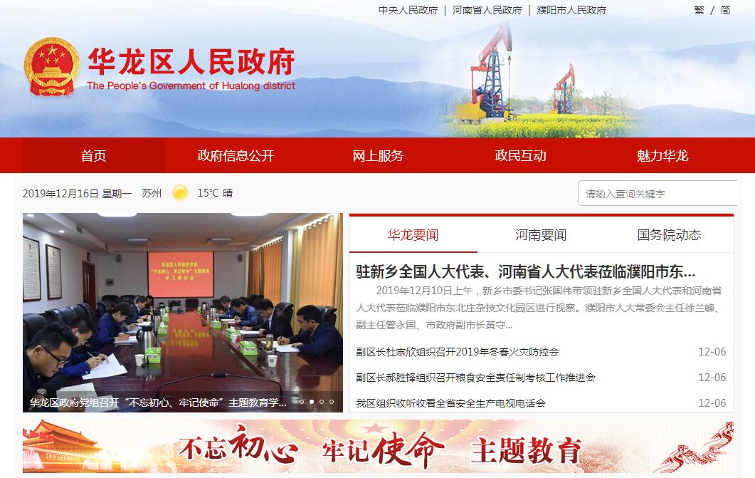 华龙区是濮阳市唯一市辖行政区,现辖1乡1镇9个街道办事处,59个行政村,64个社区居委会,总面积10790.41公顷(不包括高新区、濮北新区、濮阳市工业园区),常驻人口47.18万人, 是濮阳市政治、经济、文化中心和中原油田总部所在地,是冀鲁豫三省人流、物流、资金流、信息流的汇集地。春秋时期,卫国建都于此,诸侯各国会盟于戚城,现有孔悝城、子路坟、蒯愦台、会盟台等历史遗迹甚多。华龙区岳村镇东北庄是中国杂技发源地之一,被称为“中国杂技之乡”,与河北吴桥并称“中国杂技南北两故里”,2008年“东北庄杂技”被列入国家级非物质文化遗产。2009年,华龙区被列为河南省文化改革发展试验区。华龙区位于黄河冲积平原中部,地势西南略高于东北,最高海拔569米,最低海拔48.5米,平均坡降1/400——1/8000。华龙区石油、天然气资源丰富,主要农作物有小麦、玉米、大豆、花生等。大广、濮鹤高速在此交汇,106国道、101和209省道纵横交织,郑濮济高铁客运专线将在濮东设站,交通网络四通八达。近年来,华龙区先后被命名为“全国科技进步先进区”“国家级可持续发展实验区”“全国社会治安综合治理先进区”“国家慢性病综合防控示范社区”“全国生态示范区”“全国新型农村和城镇居民社会养老保险工作先进区”“全国社区卫生服务示范区”“国家慢病综合防控示范区”“全国法治县(市、区)创建活动先进单位”等多项国家级荣誉称号。2018年全区生产总值完成160.7亿元,增长8.1%,居全市第3位。社会消费品零售总额完成111.84亿元,增长9.5%,居全市第3位。规模以上工业增加值、固定资产投资分别增长6%、5.7%,居全市第4、6位。一般公共预算收入完成12.38亿元,增长9.8%,税比86.7%,总量、质量居全市前列;一般公共预算支出19.58亿元,增长16%,其中上解支出3.3亿元。中原办、胜利办、黄河办、人民办、建设办财政收入稳定在亿元以上。城乡居民人均可支配收入31642元,增长9.1%,居全市第1位。常住人口城镇化率达到94.6%。濮东产业集聚区完成固定资产投资126亿元,主营收入230亿元,实现利税8亿元,被评为“省产业集群商标品牌培育基地”。特色商业区完成主营业务收入117.5亿元,固定资产投资13.44亿元,实现利税7.2亿元,吸纳就业4.5万人,保持全省先进位次。东北庄杂技文化园区被命名为“省级服务业专业园区”,东北庄入选中国传统村落。