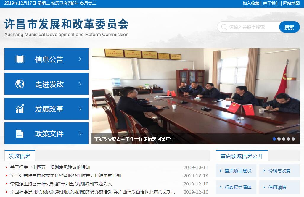 许昌市发展和改革委员会,为市政府工作部门。其主要职责是:(一)拟订并组织实施全市国民经济和社会发展战略、中长期规划和年度计划。统筹协调经济社会发展总体规划、主体功能区规划与专项规划、区域规划与市县规划,完善规划制度建设。统筹协调市级专项规划、区域规划编制申报管理,负责会签或联合上报需报市政府批准的规划,衔接需要安排市政府投资和涉及重大项目的规划。负责建立健全科学制定、有效实施、及时评估和动态调整发展战略规划的制度机制。(二)综合协调宏观经济政策,会同有关部门完善宏观调控协调机制,推进宏观调控目标制定和政策手段运用机制化。研判经济发展趋势,提出国民经济发展、价格总水平调控和优化经济结构的目标,提出综合运用各种经济手段和政策的建议,受市政府委托向市人大提交国民经济和社会发展计划的报告。(三)负责监测宏观经济和社会发展态势,承担预测预警和信息引导的责任,研究全市经济运行和总体产业安全等重要问题并提出调控建议,协调解决经济运行中的重大问题,调节经济运行,负责组织重要物资的紧急调度和交通运输协调。(四)参与分析研究全市财政、金融运行情况,研究提出政府性融资措施,贯彻财政政策、货币政策和土地政策,拟订并组织实施价格措施。综合分析财政、金融、土地政策的执行效果,监督检查价格措施的执行。组织拟订促进股权投资发展的措施,负责创业投资和产业投资基金及其管理机构的监督管理、发展和制度建设。与有关部门共同推进全省社会信用体系建设工作。负责组织制定和调整市管重要商品价格、服务价格和重要收费标准,依法查处价格违法行为和价格垄断行为等。负责全口径外债总量控制、结构优化和监测工作。(五)承担指导推进和综合协调全市经济体制改革的责任,研究全市经济体制改革和对外开放的重大问题,组织拟订综合性经济体制改革方案,协调有关专项经济体制改革方案,会同有关部门搞好重要专项经济体制改革之间的衔接,指导全市经济体制改革试点和改革试验区工作。(六)承担固定资产投资综合管理职责,拟订全市全社会固定资产投资总规模和投资结构的调控目标及措施,负责规划重大建设项目和生产力布局,衔接平衡需要申请中央和省政府投资、安排市级政府投资和涉及重大建设项目的专项规划。统筹平衡涉及市财政性建设资金的项目。安排市级财政性建设资金,按规定权限审批、核准、审核重大建设项目、重大外资项目、境外资源开发类重大投资项目和大额用汇投资项目。指导政策性贷款建设资金使用方向和市政府政策性投资公司固定资产投资活动。指导和监督国外贷款建设资金的使用,研究提出利用外资和境外投资的战略、规划、总量平衡和结构优化的目标和措施。拟订扩大民间投资措施,建立重大项目社会公开发布制度。指导协调矿产、能源、资源等领域重大项目国际合作。牵头组织全市特重大自然灾害的灾后恢复重建规划编制,协调有关重大问题。审批市政府投资项目和重大基础设施项目概算和初步设计。指导全市工程咨询业发展。(七)推进经济结构战略性调整。会同有关部门研究提出我市构建现代产业体系、现代城镇体系、自主创新体系、现代市场体系的战略、目标和规范性文件并组织实施;组织拟订综合性产业的规范性文件,负责协调第一、二、三产业发展的重大问题并衔接平衡相关发展规划和重大政策,做好与国民经济和社会发展规划、计划的衔接平衡;协调农业和农村经济社会发展的重大问题;会同有关部门推进服务业发展,指导和推动服务业载体平台建设,拟订现代物流业发展战略、规划,协调解决重大问题;统筹推进战略性新兴产业发展,研究拟订战略性新兴产业、高技术产业发展、产业技术进步的发展战略、规划并组织实施;统筹推进、综合协调产业聚集区发展工作;协调解决重大技术装备推广应用等方面的重大问题;统筹信息化发展规划与国民经济和社会发展规划、计划的衔接平衡。(八)统筹推进城乡区域协调发展、城镇化发展,推进落实区域发展总体战略、主体功能区战略、城镇化发展战略和重大政策,完善空间规划体系。承担组织编制全市主体功能区规划并协调实施和进行监测评估的责任,负责区域经济合作的统筹协调;研究提出全市新型城镇化发展战略、规划,组织拟定落实相关中原城市群建设及其他区域空间布局等发展战略、规划并组织实施。(九)承担重要商品总量平衡和宏观调控的责任,监督执行全市重要农产品、工业品和原材料进出口总量计划,并根据经济运行情况会同有关部门及时与省衔接调整进出口总量计划,提出粮食、棉花、食用植物油等重要物资和商品的市级储备计划。(十)负责社会发展与国民经济发展的政策衔接,组织拟订全市社会发展战略、总体规划和年度计划,研究拟订人口发展战略、规划,参与拟订全市卫生和计划生育、科学技术、教育、文化、体育、新闻出版广电、民政、残疾人等发展战略;统筹推进基本公共服务体系建设和收入分配制度改革,研究提出促进就业、完善社会保障与经济协调发展的建议,协调社会事业发展和改革中的重大问题。(十一)推进实施可持续发展战略,负责节能减排的综合协调工作,组织拟订发展循环经济与低碳经济、全社会能源资源节约