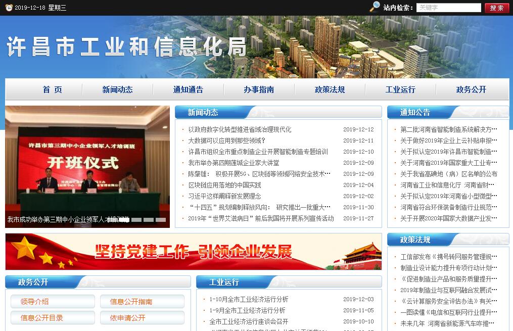 许昌市工业和信息化局贯彻落实党中央关于工业和信息化工作的方针政策和省委、市委决策部署,在履行职责过程中坚持和加强党对工业和信息化工作的集中统一领导。其主要职责是:(一)贯彻执行上级有关工业和信息化的法律、法规和方针政策,协调解决新型工业化进程中的重大问题,拟订并组织实施全市工业和信息化的发展规划以及推动传统产业技术改造相关办法,推进产业结构战略性调整和优化升级,推进信息化和工业化融合。(二)拟订并组织实施全市工业行业规划、计划和产业政策,提出优化产业布局和结构政策建议;引导和扶持工业和信息产业发展,起草相关规范性文件,拟订并组织实施行业技术规范和标准,指导行业质量管理工作。(三)监测分析全市工业运行态势,统计并发布相关信息,进行预测预警和信息引导,协调解决行业运行发展中的有关问题并提出意见建议;指导相关行业加强安全生产管理,负责工业行业领域安全生产应急管理、产业安全等相关工作。(四)拟订并组织实施全市制造业服务化、平合化发展中长期规划和年度计划,促进制造业和生产性服务业融合发展,推进产业融合、生产性服务业功能区和公共服务平合建设;促进供应链管理技术推广应用,协同推进现代物流业发展。(五)负责提出全市工业和信息化固定资产投资规模和方向(含利用外资和境外投资),国家、省对口部门和本市用于工业和产业信息化财政性建设资金安排的意见,按照市政府规定权限审批、核准省市规划内以及年度计划规模内固定资产投资项目。(六)组织实施国家高技术产业中涉及生物医药、新材料、航空航天、信息产业等的规划、政策和标准,指导行业技术创新和技术进步,以先进适用技术改造提升传统产业,组织实施国家、省、市有关科技重大专项,推进相关科研成果产业化,推动全市软件业、信息服务业和新兴产业发展。(七)拟订并组织实施全市工业和信息化的能源节约和资源综合利用、循环经济、绿色化制造促进办法,参与拟订能源节约和资源综合利用、循环经济、绿色化改造促进规划、办法,组织协调相关重大示范工程建设和新产品、新技术、新设备、新材料推广应用。(八)负责全市振兴装备制造业的组织协调工作,组织拟订重大技术装备发展和自主创新的规划、政策,依托国家和省、市重点工程建设协调有关重大专项的实施,推进重大技术装备国产化,指导引进重大技术装备的消化创新。(九)负责全市中小企业、民营经济发展的宏观指导,拟订并组织实施中小企业发展中长期规划;负责推动建立完善中小企业服务体系,协调解决重大问题;会同有关部门拟订促进中小企业发展和非公经济发展的相关政策、措施并监督检查执行情况。(十)统筹推进全市信息化工作,组织拟订相关规范性文件并协调信息化建设中的重大问题;促进电信、广播电视和计算机网络融合,指导协调工业电子商务平台建设,推动跨行业等互联互通和重要信息资源的开发利用共享;推进物联网、云计算、大数据等基于信息技术的新兴业态发展。(十一)承担相关信息安全管理责任;负责协调维护全市网络安全和网络安全保障体系建设,指导监督重点行业的关键信息基础设施和基础网络的相关安全保障工作;承担信息安全应急协调工作,协调处理重大事件。(十二)负责全市工业和信息化领域对外交流合作事务,研究拟订支持意见措施;指导各地开展相关产业交流合作工作,督促交流合作签约项目落实情况;拟订并组织实施全市制造业对外合作年度行动计划,编制发布我市工业和信息化领域产业合作指南;研究协调产业转移示范区发展中的重大问题,提出意见建议。(十三)承担企业改革和信访稳定工作。(十四)完成市委、市政府交办的其他任务。