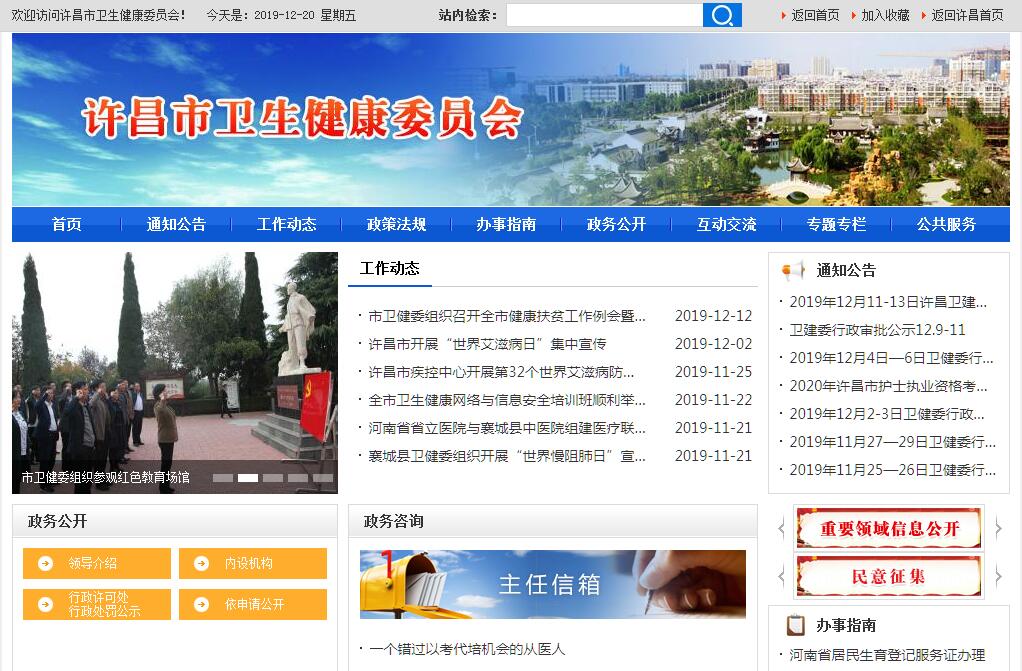 许昌市卫生健康委员会贯彻落实党中央关于卫生健康工作的方针政策和省委、市委决策部署,在履行职责过程中坚持和加强党对卫生健康工作的集中统一领导。其主要职责是:(一)贯彻执行党和国家国民健康政策,执行党和国家、省卫生健康事业发展法律法规、政府规章、政策、规划,负责起草全市卫生健康、中医药事业发展的规范性文件,拟订卫生健康地方标准和技术规范。统筹规划全市卫生健康资源配置,指导全市卫生健康规划编制和实施。制订推进全市卫生健康基本公共服务均等化、普惠化、便携化和公共资源向基层延伸等措施并组织实施。(二)协调推进深化医药卫生体制改革,研究提出全市深化医药卫生体制改革重大决策、措施的建议。组织深化公立医院综合改革,推进管办分离,健全现代医院管理制度,组织实施国家及省、市推动卫生健康公共服务提供主体多元化、提供方式多样化的政策措施,提出医疗服务和药品价格的有关建议。(三)拟订并组织落实全市疾病预防控制规划、免疫规划以及危害人民健康公共卫生问题的干预措施。负责全市卫生应急工作,组织指导全市突发公共卫生事件的预防控制和各类突发公共事件的医疗卫生救援。发布法定报告传染病疫情信息、突发公共卫生事件应急处置信息。(四)拟订并协调落实应对人口老龄化措施,负责推进老年健康服务体系建设和医养结合工作。(五)贯彻落实国家药物政策和国家基本药物制度,开展药品使用监测、临床综合评价和短缺药品预警。组织开展食品安全风险监测评估,组织拟订食品安全地方标准。(六)负责执行职责范围内的职业卫生、放射卫生、环境卫生、学校卫生、公共场所卫生、饮用水卫生等公共卫生的监督管理,负责传染病防治监督,健全卫生健康综合监督体系。(七)拟订全市医疗机构、医疗服务行业、采供血机构管理办法并监督实施,建立医疗服务评价和监督管理体系。会同有关部门贯彻执行国家、省卫生健康专业技术人员资格标准,拟订医疗服务规范、标准和卫生健康专业技术人员职业规则、服务规范并组织实施。(八)负责计划生育管理和服务工作,开展人口监测预警,研究提出全市人口与家庭发展相关意见和建议。(九)指导全市基层医疗卫生、妇幼健康服务体系建设。贯彻落实国家、省计划生育政策,制订并组织落实人口出生缺陷干预措施,减少新生儿先天性疾病发生率。负责全市卫生健康宣传、健康教育和健康促进工作。加强全科医生队伍建设。推进全市卫生健康科技创新发展。(十)负责市保健对象的医疗保健工作,负责在许昌市召开的国际性、国家和省、市重要会议与重大活动的医疗卫生保障工作。承办市委、市政府委托或指定的有关保健医疗方面的工作任务及相关事项。(十一)负责中医管理工作,拟订全市中医药事业中长期发展规划。(十二)承担许昌市爱国卫生运动委员会、许昌市艾滋病防治工作委员会、许昌市深化医药卫生体制改革领导小组、许昌市人口和计划生育工作领导小组、许昌市老龄工作委员会、许昌市保健委员会的日常工作。指导许昌市计划生育协会的业务工作。(十三)完成市委、市政府交办的其他事项。