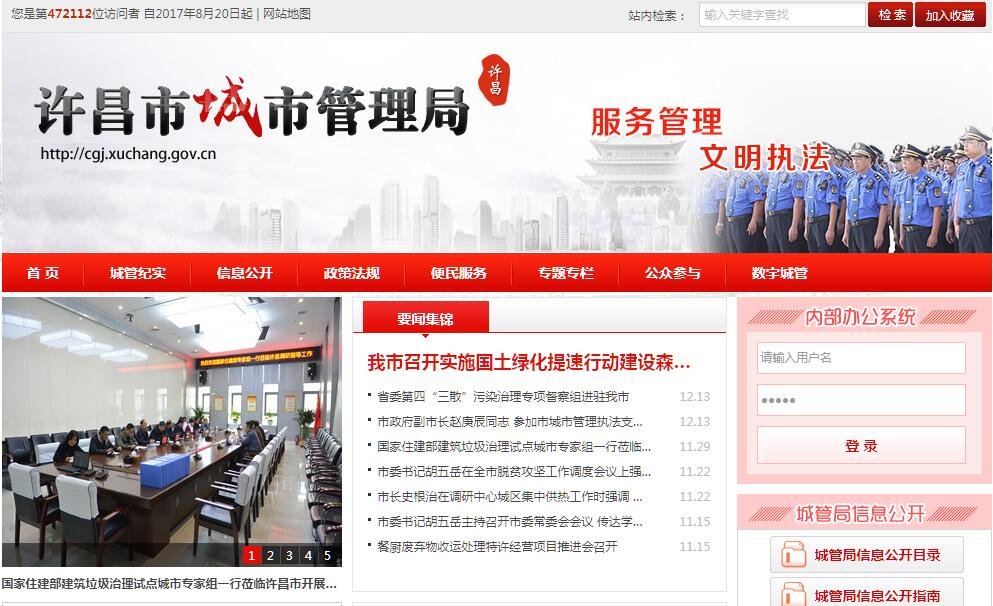 许昌市城市管理局是市政府工作部门,为正处级,挂许昌市城市综合执法局牌子。许昌市城市管理局贯彻落实党中央关于城市管理和城市管理行政执法方面工作的方针政策和省委、市委决策部署,在履行职责过程中坚持和加强党对城市管理工作和城市管理行政执法方面的集中统一领导。其主要职责是:1.贯彻执行上级关于城市管理和城市管理行政执法方面的法律法规和方针政策;研究拟订全市城市管理规范性文件,编制城市管理总体规划、中长期发展规划、专项规划和年度计划,并组织实施和监督检查。2.负责制定全市城市管理和城市管理综合执法工作规范和执法行为规范,组织开展业务培训、综合考核、法律法规普及和宣传教育工作。3.负责全市城市管理和城市管理综合执法的统筹协调、组织调度和监督考核;负责全市城市管理和城市管理综合执法行政复议和行政诉讼工作的监督指导;负责全市城市管理综合执法机构依法行政和严格、规范、文明执法工作的监督指导;负责全市跨区域城市管理综合执法重大案件的查纠工作。4.负责行使住房城乡建设领域法律法规规章规定的全部行政处罚权及相应的行政强制权。(1)具体负责行使市建成区内房地产市场方面未经许可销售房屋、未取得资质证书或超越资质从事房地产开发经营等行为的行政处罚权;行使市建成区内建筑市场方面由市本级及以上财政投资的建设工程项目未经许可违法建设行为的行政处罚权;行使市建成区内工程质量监督方面的行政处罚权;行使市管区域内建筑工地扬尘污染、噪音污染、文明施工管理违法违规行为的行政处罚权。(2)具体负责行使市建成区内建筑垃圾、生活垃圾、餐厨垃圾清运处置违法违规行为的行政处罚权;行使市建成区内违规设置大型户外广告、临街建筑物外部装修及城市家具行为的行政处罚权;行使市管区域内道路、广场、游园、绿化带等市容市貌和环境卫生管理方面的行政处罚权。(3)具体负责行使市管区域内对企业和个人未经审批或未按批准要求占用、挖掘、破坏市政道路、桥梁及其他市政公用设施等违法违规行为的行政处罚权;行使公用事业管理方面除瓶装燃气和汽车加气站管理的行政处罚权;行使市区的夜景亮化项目管理方面的行政处罚权。(4)具体负责行使市管区域内未经审批占用、破坏园林、砍伐树木及不按批准要求对园林树木实施砍伐、移植等违法违规行为的行政处罚权;行使市管区域内破坏广场游园、公共绿地等违法违规行为的行政处罚权。5.负责行使市城市规划区范围内城乡规划管理方面违反城乡规划、已经市委城乡规划建设委员会审议通过但未取得规划许可、或未按照城乡规划许可内容建设违法案件的行政处罚权及相应的行政强制权。6.负责行使市管区域内社会噪声污染、餐饮服务业油烟污染、露天烧烤污染、城市焚烧沥青塑料垃圾等烟尘和恶臭污染、露天焚烧秸秆落叶等烟尘污染的行政处罚权。7.负责行使市管区域内户外公共场所无照经营、食品销售和餐饮摊点无证经营的行政处罚权。8.负责行使市管区域内法律、法规和地方性规章赋予的涉及城市管理执法领域的其他职责和市政府交办的其他执法事项。9.负责组织拟定全市市容市貌管理相关标准规范并监督实施;负责全市市容市貌的统筹管理,组织协调城市管理重大活动;牵头做好城市街景综合整治工作;负责市管区域内在城市道路两侧和公共场地临时堆放物料,搭建临时建筑物、构筑物或者其他设施许可;负责市管区域内市容市貌管理工作。10.负责市建成区城市公共空间规划的监管;负责全市户外广告专项规划的组织编制、拟定设置技术规范;负责全市设置大型户外广告及市管区域在城市建筑物、设施上悬挂、张贴宣传品的审批管理;负责市管区域内临街建筑物外部装修审批管理。11.负责全市环境卫生管理工作的行业监管、督促指导、综合协调、督导考核等;负责市管区域内环境卫生管理工作;负责市建成区生活垃圾的处置、资源化利用和处理费征收;负责市管区域内环卫设施拆除及异地重建批准;负责市管区域内从事城市生活垃圾经营性清扫、收集、运输、处理服务许可;负责市管区域内大型环卫基础设施的管理。12.负责全市建筑垃圾管理和资源化利用工作的行业管理、督促指导、综合协调;负责市区范围内建筑垃圾的监督管理工作;负责对魏都区、东城区、经济技术开发区拆迁类建筑垃圾处置核准和处置费征收工作;负责对市区建筑垃圾私拉乱运、污染道路等违章行为的查处工作;负责对市区建筑垃圾无害化处理和资源化利用、特许经营企业的监督指导工作。13.负责市建成区公共自行车系统建设和运营管理,督促指导各县(市)公共自行车系统建设和运营管理。14.负责全市城市景观照明的行业管理、督促指导、综合协调等;负责市区的景观照明项目的组织实施、管理维护。15.负责全市园林绿化工作的行业指导、综合协调工作,拟定相关规范标准并监督实施;负责城市规划区内工程建设涉及城市绿地、树木审批工作;负责市管区域内园林绿化项目的组织实施。16.负责全市数字化城管系统的运行管理、督促指导、综合协调、督导考核等;督促指导县(市、区)数字化城管系统平台的建设管理;负责全市城市管理突发事件的指挥调度等工作。17.完成市委、市政府交办的其他任务
