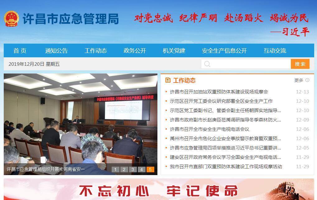 许昌市应急管理局是市政府工作部门。其主要职责是:(一)负责全市应急管理工作,指导各级各部门应对安全生产类、自然灾害类等突发事件和综合防灾减灾救灾工作。负责全市安全生产综合监督管理和工矿商贸行业安全生产监督管理工作。(二)拟订全市应急管理、安全生产等规范性文件,组织编制市应急体系建设、安全生产和综合防灾减灾规划,贯彻执行国家应急管理、安全生产和综合防灾减灾法律法规,监督实施相关规程和标准,组织起草全市应急管理、安全生产、防灾减灾等综合性管理办法。(三)指导全市应急预案体系建设,建立完善事故灾难和自然灾害分级应对制度,组织编制全市总体应急预案和安全生产类、自然灾害类专项预案,综合协调应急预案衔接工作,组织开展预案演练,推动应急避难设施建设。(四)牵头建立统一的全市应急管理信息系统,负责信息传输和共享,建立监测预警和灾情报告制度,健全自然灾害信息资源获取和共享机制,依法统一发布灾情。(五)组织指导协调安全生产类、自然灾害类等突发事件应急救援,承担市应对较大灾害指挥部工作,综合研判突发事件发展态势并提出应对建议,协助市委、市政府指定的负责同志组织较大灾害应急处置工作。(六)统一协调指挥各类应急专业队伍,建立应急协调联动机制,推进指挥平台对接,衔接驻许解放军和武警部队参与应急救援工作。(七)统筹应急救援力量建设,负责森林火灾扑救、抗洪抢险、地震和地质灾害救援、生产安全事故救援(含煤矿)等专业应急救援力量建设,指导市综合性应急救援队伍建设,指导县(市、区)及社会应急救援力量建设。(八)组织指导消防工作,指导消防监督、火灾预防、火灾扑救等工作。(九)指导协调全市森林火灾、水旱灾害、地震和地质灾害等防治工作,负责自然灾害综合监测预警工作,指导开展自然灾害综合风险评估工作。(十)组织协调全市灾害救助工作,组织指导灾情核查、损失评估、救灾捐赠工作,按权限管理、分配救灾款物并监督使用。(十一)依法行使安全生产综合监督管理职权,指导协调、监督检査市政府有关部门和各县(市、区)政府、管委会安全生产工作,督促、指导安全生产责任落实。组织开展安全生产巡查、考核工作。承担市安全生产委员会日常工作。(十二)按照分级、属地原则,依法监督检查工矿商贸生产经营单位贯彻执行安全生产法律法规情况及其安全生产条件和有关设备(特种设备除外)、材料、劳动防护用品的安全生产管理工作。依法组织实施安全生产准入制度,并对执行情况进行指导和监督。负责危险化学品安全监督管理综合工作和烟花爆竹经营企业安全生产监督管理工作。(十三)依法组织指导生产安全事故调查处理,监督事故查处和责任追究落实情况。组织开展自然灾害类突发事件的调查评估工作。协助国家、省政府调查处理特别重大及重大事故。综合管理全市生产安全伤亡事故、事故隐患排查治理、安全生产统计分析工作。(十四)制定应急物资储备和应急救援装备规划并组织实施,会同市发改委等部门建立健全应急物资信息平台和调拨制度,在救灾时统一调度。(十五)负责应急管理、安全生产宣传教育和培训工作,组织指导应急管理、安全生产的科学技术研究、推广应用和信息化建设工作。依法组织、指导并监督特种作业人员操作资格考核工作和工矿商贸生产经营单位主要负责人、安全生产管理人员安全生产知识和管理能力考核工作,监督检查工矿商贸生产经营单位安全培训工作。监督、指导注册安全工程师执业资格考试和注册管理工作。(十六)负责监督指导和组织协调全市安全生产行政执法工作。(十七)开展应急管理方面的交流与合作,组织参与安全生产类、自然灾害类等突发事件的跨区域救援工作。(十八)承担全市煤炭行业管理和媒矿安全监管职责。(十九)完成市委、市政府交办的其他任务。