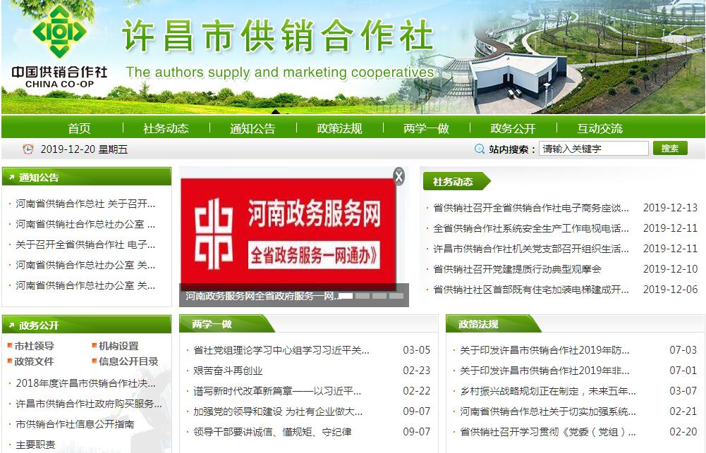 许昌市供销合作社主要职责:(一)贯彻落实党中央、国务院、省委、省政府和市委、市政府有关农村经济和社会发展的方针、政策;参与研究和实施全市合作经济发展和农村现代流通的政策和规定。(二)研究制定全市供销合作社的发展战略和发展规划,指导全市供销合作社的改革和发展;参与研究拟订全市农业和农村经济发展规划。(三)按照政府授权,负责对重要农业生产资料、农副产品、再生资源和烟花爆竹经营的组织、协调和管理;负责管理化肥、农药等重要物资的市级储备工作。(四)组织、指导全市供销合作社系统积极参与农业产业化,搞好农业社会化服务体系和农村商品流通体系建设;推动各级供销合作社实施农业综合开发,加强农产品市场建设,开展农业生产社会化服务;指导各级供销合作社领办创办农民专业合作社和组建农民专业合作社联合社。(五)推进全市供销合作社综合改革工作,推动构建联合社机关主导的行业指导体系和社有企业支撑的经营服务体系“双线运行”机制,加强对社有资产的监督管理,增强服务“三农”综合实力。(六)加强对本级社直属单位及县(市、区)供销合作社的行业管理和教育培训;负责成员社的年度综合业绩考核工作;指导成员社主动适应新型城镇化和新农村建设要求,加快城乡社区综合服务平台建设。(七)协调各有关部门推动各级供销合作社打造“互联网+”供销合作社,发展农村电子商务等新型经营业态,开展农村合作金融服务。(八)向政府和有关部门反映农民社员和供销合作社的意见及要求,维护广大农民社员和各级供销合作社、农村合作经济组织的合法权益,协调与有关部门和相关社会组织的关系。(九)行使本级社社有资产和直属单位资产的所有权代表和管理者职能,承担本级社社有资产出资人代表职责,加强社有出资企业管理,监督管理社有资产保值增值,并按照出资额依法享有资产受益、重大决策和选择管理者的权利。(十)协调指导县(市、区)供销合作社开展业务工作。(十一)承办市委、市政府和河南省供销合作总社交办的其他事项。
