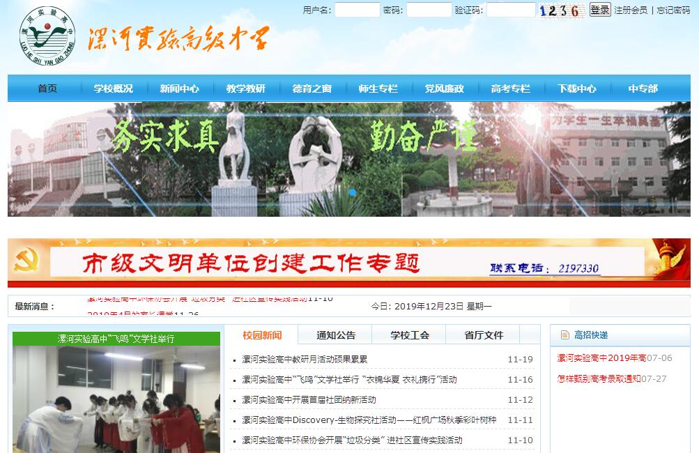 漯河实验高中由漯河师范学校改制而成,学校始建于1953年,占地113亩,建筑面积52000平方米,绿地面积6600平方米。环境幽雅,景色宜人。有教学楼、科教楼、艺术楼、图书馆、大礼堂等教学用房和微机室、多媒体教室、语音室和校园网等现代化的教学设施。学校现有教职工242人,48个教学班,在校学生达3000余人,是河南省省级示范性优质高中之一。在六十多年的办学历程中,该校秉承实验的优良传统,以实验立校,靠实验兴校,在实验中创新,逐步形成了自己深厚的文化底蕴、优良的办学传统和鲜明的办学特色,取得了令人可喜的辉煌成就。学校领导高度重视师资队伍建设,坚持走内涵发展之路,强力推进人才工程。如今,该校拥有一个充满活力、与时俱进的领导班子和一支高素质的教师队伍。这支队伍教育思想端正、师德行为高尚、业务水平精湛、甘于无私奉献,是学校可持续发展的重要保障。截至目前,该校的教师,第一学历本科的达100%,其中35名教师进修了研究生课程,8位教师获得硕士学位,省特级教师2名,省级学科带头人5名,省、市级骨干教师18名,市拔尖人才3名,“161”人才1名,一大批中青年教师已成为省市教坛上的骨干。该校始终把教育教学改革作为学校可持续发展的主导思想。学校坚持从科学管理入手,努力构建人文校园,积极探索素质教育和特色办学的新模式。学校非常注重学生非智力因素的开发,他们以学生的全面发展为目标,把道德、心理、法制和艺术教育融为一体,去实践伟大教育家陶行知先生所倡导的,把学生培养成具有“健康的体魄,矫健的身手,科学的头脑,艺术的兴趣,具有改进社会的精神的新一代“实高人”。实验出成效,改革出硕果。现已有翟森彬、王亚楠、张小磊、郑喆轩、丁建策、杨冬雪、白金义、范琳琳等八名同学被北大清华录取(截止于2010年)。另有一批学子被中国美院、中国戏曲学院、中国传媒大学、西安音乐学院、武汉音乐学院、四川音乐学院录取。该校从2005年开始创办宏志班、春蕾班,截止目前已有10届宏志班、12届春蕾班。(截止于2016年9月)为品学兼优的贫困学生实现人生理想架设桥梁。各项优惠政策为宏志春蕾生解除了生活难题,优秀的师资为求知若渴的孩子插上了飞翔的翅膀。因此学校被评为“漯河市十大公益明星”漯河实验高中以实验为立身之本,以改革为发展的动力,以探索精神和办学业绩深深地影响和辐射了漯河市的周边学校教学水平和教育质量。该校还被表彰为“全国教育系统先进集体”、“全国卫生先进单位”、“河南省文明单位”、“河南省教育先进单位”、“河南省园林式单位”、“河南省绿色学校”、“河南省校园网示范学校”、“河南省体育达标先进单位”、“漯河市师德建设先进单位”等。半个多世纪的风雨沧桑,一批批桃李遍布华夏。漯河实验高中既培养出了像唐聚圈(原许昌政协主席,现任许昌市关工委主任)、路国贤、彭德胜(原河南省体育局局长)等地市级党政领导干部、黄国英(福建省轻纺(控股)有限责任公司董事、副总经理)等国有公司精英,培养出了像司联合(南京师范大学外国语学院教授,硕士生导师)等一大批高校教授、文学博士和硕士生导师,也培养出了像李红梅(人民政协报社社长)等一大批社会活动家、作家、出版家。沙澧滔滔,洗去的是岁月的铅华。征程漫漫,挡不住的是漯河实验高中人探索的脚步。我们有理由相信,秉承实验传统,以实验促改革,以改革谋发展的漯河实验高中,必能谱写出更加辉煌的篇章!