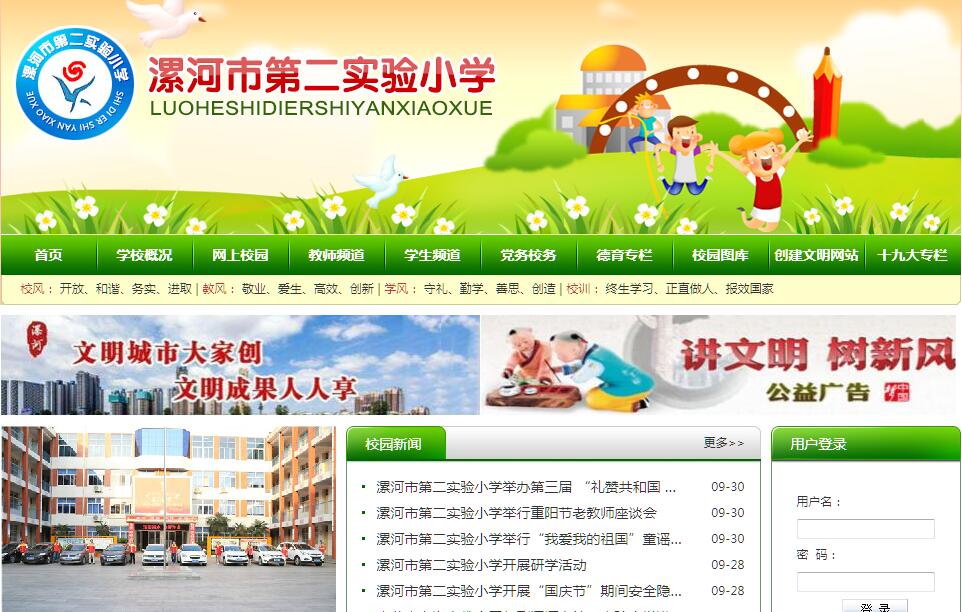 漯河市第二实验小学坐落于古老而美丽的澧河之畔,占地14000㎡,校舍面积8100㎡,拥有一流的乒乓球训练大厅、多功能教室、电子备课室和百兆校园网等现代化的教学活动设施。学校现有教职工近百人,学校现有男教师22人,女教师88人,学生人数3122,其中省市级学科带头人、省市级骨干教师和中小学高级教师占50%,学历达标率100%。 办学宗旨 校风:开放、和谐、务实、进取 教风:敬业、爱生、高效、创新 学风:守礼、勤学、善思、创造 校训:终生学习、正直做人、报效国家 办学目标:创建人民满意的和谐校园 工作方法:明理、顺气、科学、公正 校长寄语 寄语老师:没有德不能当教师,没有才当不好教师,没有创新当不成名师。 寄语家长:家庭是教育孩子的第一课堂,父母是孩子的第一任老师。 学校荣誉 学校先后荣获全国中华文化经典诵读示范学校、全国小公民道德教育先进学校、全国百所体育传统项目先进学校,河南省教育系统先进集体、河南省卫生先进单位、河南省绿色学校、河南省田径、乒乓球双项传统项目学校、河南省小学德育先进实验学校等。还被市政府授予首批示范式学校、市科学管理先进单位、市文明单位、市现代教育技术课题研究先进集体、市教科研先进单位、市语言文字规范化示范校、市艺术教育工作先进单位等近百项荣誉称号。学校承担的教育部、中央电教馆等多项“十一五”重点课题研究获得专家组高度评价,并分别荣获河南省信息技术优秀成果特等奖和一等奖。《基础教育参考》、《教育时报》、《小学教育》、《河南信息技术教育》、《青年导报》、《大河报》、《河南城乡经济报》、《漯河日报》以及漯河教育网等各级新闻媒体对我校教育教学成果多次进行了深入报道。 历史渊源 漯河市第二实验小学是市教育局直属小学。其前身是1921年由陕西商人联办而成的漯河市最早的小学,校名为公立小学,1945年更名为东旭小学,后校址几经迁移,校名几经更迭,于1951年3月迁至存善局街,校名由五完小更名为一完小,7月,学校又迁至坊子街(人民西路)。1955年,校名改为漯河师范附属小学,1970年改为勤俭街小学,1978年重新改为漯河师范附属小学,2002年校名更改为漯河市第二实验小学。历经近百年的风雨发展,学校逐步形成了独特的文化底蕴,成为教育科研的基地、名师成长的沃土、英才辈出的摇篮,开创出时代教育发展的新诗篇,成为漯河市小学教育的一个闪光品牌。 特色办学 一、教育科研,一枝独秀 学校科学定位,把教育科研摆在生存、发展的战略高度,提出了“以科研促课改,以科研求发展”的理念,全方位构建学校教育科研体系。目前,学校在继国家级重点研究课题《信息技术整合于作文教学的研究》获省级信息技术成果特等奖之后,又捷报再传,承担的“十一五”国家级科研课题《网络环境下的序列作文研究》喜获省级一等奖。同时,还承担了教育部重点课题《课程资源有效促进英语教学的研究与实验》、《信息技术整合于小学作文教学》等。 课题研究的深入开展也促进了一大批中青年教师的快速成长。其中,陈静老师曾多次承担漯河市教育系统组织新课程培训任务。三位青年教师在国家级优质课比赛中分获一、二等奖,有30余位教师在省市级优质课比赛中获得一、二等奖;教师撰写的论文近百篇获省、市奖励,有的还发表在省级以上报刊杂志上;学生有3000多人次在网络创新作文大赛、数学竞赛、青少年科技创新大赛等各项活动中获国家级及省市级的奖励。学生作品被选编成集,出版了学生创新作文选《小荷才露尖尖角》和实验班作文集《倾听幼竹拔节声》。 二、养成教育,扎实开展 为落实新课程标准提出的“以学生发展为本”的理念,学校规范学生行为,把养成教育落到实处,不断拓展德育的新内涵,在师生中以养成教育为核心,大力开展各种德育活动。 1、经典文化润心田。每天晨读经典美文已成为学校亮丽的风景线,《三字经》、《弟子规》、《道德经》、《千字文》、《论语》和《笠翁对韵》等篇篇美文在各个教室里抑扬顿挫地响起。学生在诵读中,与高尚对话,与智慧碰撞,从中让学生明白一个道理,养成一种品质,获取真知。 2、形象展示树典范。学校创造性地推出了“漯河市第二实验小学形象代言人”展示栏,“代言人”在班级内评选,每月推出一批,其中有品学兼优的学生、有拾金不昧的少年、有捡拾校园纸屑杂物的小卫士,也有默默为班级服务的“门长”、多才多艺的读书明星等,既使上榜同学体验成功的喜悦,又使身边的同学受到教益。 3、名人进校面对面。近几年,我校先后邀请青少年心理健康专家“知心姐姐”刘梅英、赏识教育创始人周弘、中央教育科学研究所中心资深家庭教育专家潘卫东、奥运会乒乓球冠军马琳和举重冠军曾国强等名人莅临我校与师生面对面互动,引导学生树立正确的人生观、价值观,形成积极、健康的人生态度和优良品质。 三、传统项目,独领风骚 我校是漯河市最早的省级“体育项目传统学校”(1982年),并且是我市唯一的省级双项(田径、乒乓球)体育项目传统学校。我们充分挖掘资源优势,装备了我市一流的乒乓球训练大厅,开设了乒乓球技能课,成立了校田径队、乒乓球队和篮球队,积极举行各种体育活动。这些活动的开展极大丰富了学生的课余生活,响应了国家让学生积极