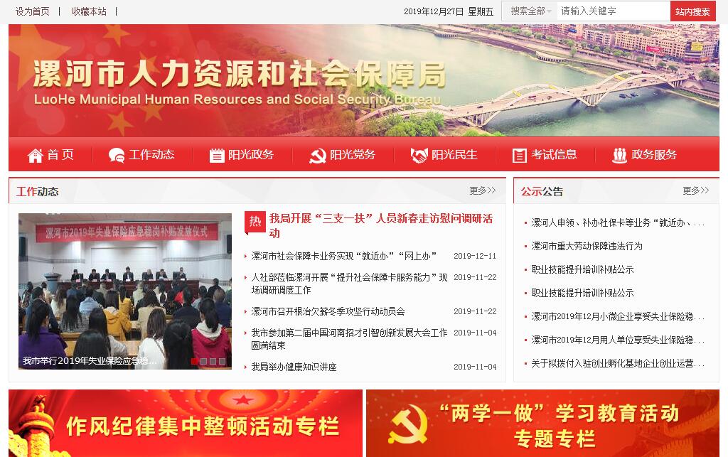 漯河市人力资源和社会保障局主要职责:(一)贯彻执行国家和省、市人力资源和社会保障事业发展的法律、法规和方针政策,拟订本市人力资源和社会保障事业发展规划、政策,起草有关地方性法规、规章草案,并组织实施和监督检查。(二)拟订并组织实施人力资源市场发展规划和人力资源流动政策,建立统一规范的人力资源市场,促进人力资源的合理流动和有效配置;负责人力资源和社会保障统计和信息化建设工作。(三)负责促进就业和职业培训工作。拟订统筹城乡的就业发展规划和政策,完善公共就业服务体系,健全就业援助制度,完善职业资格制度,统筹建立面向城乡劳动者的职业培训制度并组织实施,负责技工学校、职业技能培训机构、考核鉴定机构和就业训练机构的管理,牵头拟订大中专和技校毕业生就业政策并组织实施相关工作,会同有关部门组织实施国家关于境外人员到本市就业的管理政策,牵头拟订高技能人才、农村实用人才培养和激励政策。(四)统筹建立覆盖城乡的社会保障体系。统筹拟订城乡社会保险及其补充保险政策和标准并逐步提高统筹层次,会同有关部门拟订社会保险及其补充保险基金管理和监督制度,会同有关部门编制本市社会保险基金预决算草案,参与拟订本市社会保障基金投资政策;负责退休人员管理工作,完善退休人员管理服务体系。(五)负责就业、失业和社会保险基金预测预警和信息引导,拟订应对预案,实施预防、调节和控制,保持就业形势稳定和社会保险基金收支总体平衡。(六)牵头拟订机关、事业单位人员工资收入分配政策,建立机关、企事业单位人员工资正常增长和支付保障机制,拟订机关、企事业单位人员福利和离退休政策。(七)会同有关部门指导全市事业单位人事制度改革工作,拟订事业单位人员和机关工勤人员管理政策并组织实施。(八)负责专业技术人才队伍建设,制定专业技术人员管理和继续教育政策,承担博士后的管理工作,负责高层次专业技术人才选拔、评价和培养的相关工作,负责专业技术职务综合管理工作,牵头推进深化职称制度改革工作,负责人力资源和社会保障对外交流合作和外国专家的管理。(九)会同有关部门拟订军队转业干部安置政策,负责军队转业干部安置计划的编制与下达工作,负责军队转业干部安置和教育培训工作,组织拟订部分企业军队转业干部解困和稳定政策,负责自主择业军队转业干部管理服务工作。(十)负责行政机关公务员和参照公务员法管理单位工作人员综合管理,组织实施公务员法,拟订有关人员调配政策和特殊人员安置政策,会同有关部门拟订本市荣誉制度和政府奖励制度。(十一)会同有关部门拟订农民工工作综合性政策和规划,推动农民工相关政策的落实,协调解决重点难点问题,维护农民工合法权益。(十二)统筹拟定劳动、人事争议预防、调解、仲裁制度和劳动关系政策,完善劳动关系协调机制,制定消除非法使用童工政策和女工、未成年工的特殊劳动保护政策,组织实施劳动监察,协调劳动者维权工作,依法查处重大案件。(十三)承办市委、市政府及上级人力资源和社会保障部门交办的其他事项。