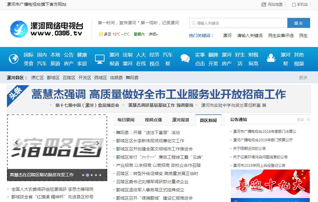 | 网站简介: 漯河网络电视台(0395.tv),是由漯河市委宣传部主管,漯河广播电影电视局主办的大型门户网站,是以视听互动为核心、融网络特色与电视特色于一体的公共服务平台。 |