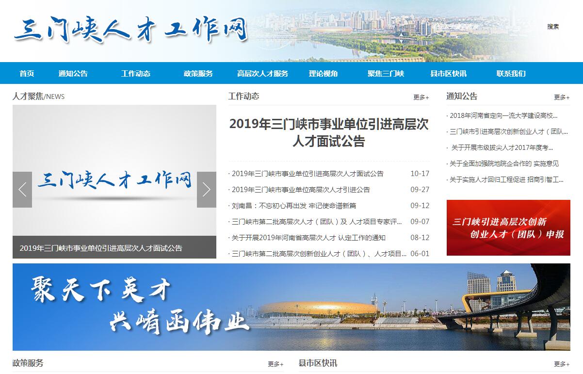 | 网站简介: 三门峡人才工作网由中共三门峡市委人才工作领导小组办公室、三门峡市高层次人才服务中心主办。 |