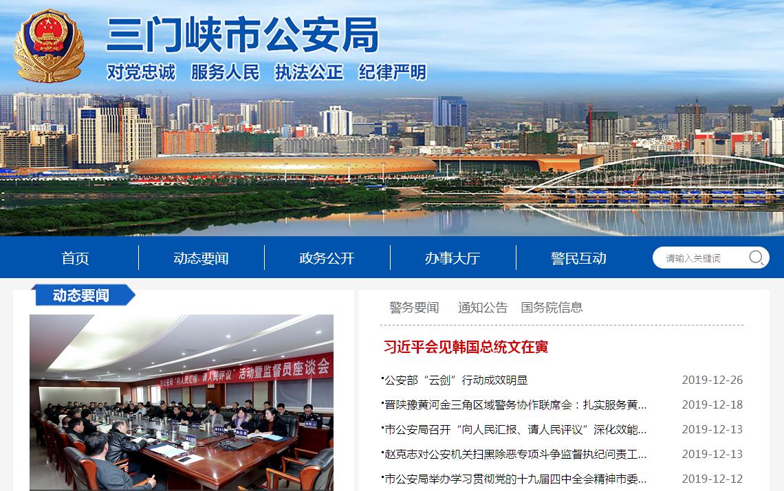 三门峡市公安局主要职责:(一)贯彻执行国家、省有关公安工作的法律、法规、条例和政策,指导、部署全市公安工作。(二)指导并组织实施全市侦查工作;协调处置危各类重大案件、治安事件和骚乱。(三)指导、监督全市公安机关依法查处危害社会治安秩序行为;指导并依法管理全市特种行业等工作。(四)指导管理全市出入境、外籍人员和香港、澳门特别行政区以及台湾地区人员在境内居留、旅行的有关工作。(五)指导并组织实施全市公安机关对国家机关、社会团体、企事业单位和重点建设工程的治安保卫工作以及群众性治安保卫组织的治安防范工作。(六)指导、监督全市消防工作。(七)指导、监督并组织实施全市公安机关维护道路交通安全、交通秩序以及机动车辆、驾驶员管理工乍。(八)指导、监督并组织实施全市公安机关对公共信息网络的安全监察工作。(九)指导、监督全市公安机关依法承担的执行刑罚和监督、考察工作;指导、监督县(市)区公安机关对监管场所的管理工作;管理市看守所、行政拘留所和收容教育所(强制戒毒所)。(十)指导、监督并负责全市收容教养审批工作;承办市政府劳动教养委员会的日常工作。(十一)研究掌握全市毒品违法犯罪动态,组织、指导全市公安机关对毒品犯罪案件的侦查工作;承办市禁毒委员会的日常工作。(十二)指导并组织实施全市对警卫对象的安全警卫工作。(十三)组织实施全市公安科学技术工作,规划公安信息技术、刑事技术和行动技术建设。(十四)拟定并组织实施全市公安机关装备、被装配备和经费等警务保障标准、制度。(十五)领导全市公安消防部队建设,对武警部队执行公安任务及相关业务建设实施领导。(十六)拟定全市公安机关人员培训、教育规划,负责全市公安队伍培训、教育工作。(十七)制定并组织实施全市公安队伍监督管理工作规章,负责全市公安队伍督察工作;按规定权限实施对干部的监督;协助纪检、监察部门查处或督办公安队伍重大违纪案件。(十八)指导全市林业公安业务工作。(十九)承办市委、市政府交办的其他事项。