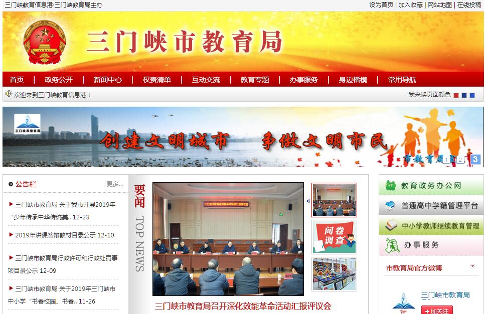 三门峡市教育局主要职责:(一)贯彻实施国家、省教育工作方针、政策;拟定有关教育的规范性文件并监督实施;负责教育理论研究和宣传工作。(二)负责全市各级各类教育的统筹规划和协调管理;制定全市教育改革发展战略和教育事业发展规划;指导各级各类学校的教育教学改革;负责全市教育基本信息的统计、分析和发布。(三)负责本部门教育经费的统筹管理;参与拟定教育拨款、教育基建投资和筹措教育经费的政策;负责市直教育系统内部审计工作。(四)负责推进全市义务教育均衡发展和促进教育公平;负责义务教育的宏观指导与协调;管理和指导普通高中教育、学前教育和特殊教育工作;落实基础教育教学基本要求和教学基本文件,组织审定基础教育教学的地方性教材和补充教材,全面实施素质教育;指导全市教育督导工作,组织对中等及中等以下教育的督导检查和评估验收工作;负责基础教育发展水平、质量的监测工作。(五)指导以就业为导向的职业教育的发展与改革,落实中等职业教育专业目录、教学指导文件和教学评估标准;负责中等职业教育职业指导工作;会同有关部门审核市属中等职业学校的设置、更名、撤销与调整。(六)规划并指导各级各类学校思想政治工作、安全、稳定、法制宣传教育、学生的品德教育、体育卫生、艺术教育、国防教育等工作,指导教育社团和少先队工作。(七)主管全市教师工作,负责全市各级各类学校教师资格制度实施;负责教育系统的表彰奖励,归口管理教师和教育管理人员继续教育;配合有关部门研究提出各级各类学校编制标准;指导各级各类学校内部人事与分配制度改革;指导全市教育系统人才队伍建设。(八)会同有关部门制定全市各级各类学校的招生计划;负责制定和下达市属中等专业学校招生计划和招生来源计划,并负责组织实施。(九)负责管理教育系统的科研工作和教育系统信息化建设。(十)归口管理教育系统的外事工作,负责与国外和港澳台地区的教育交流与合作。(十一)落实国家语言文字工作的方针、政策,制定语言文字工作规划;负责普通话推广工作和普通话师资培训工作。(十二)承办法律、法规、规章规定的行政许可、审批、审核、核准等事项。(十三)承办市政府交办的其他事项。