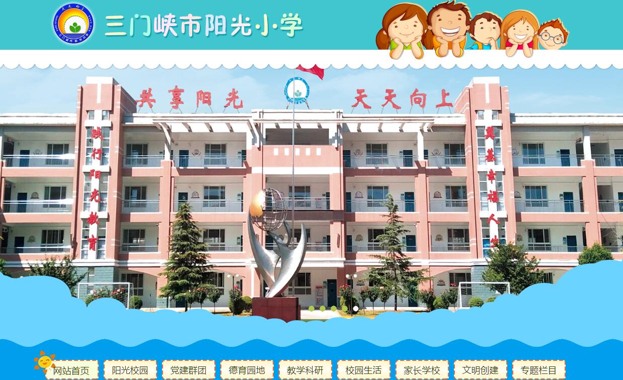 三门峡市阳光小学位于五原路与上官路交汇处,占地22.67亩,总建筑面积9000多平方米。阳光小学是2008至2009年三门峡市委、市政府公开承诺的“十件实事”之一,于2008年8月31日动工,2009年6月30日通过验收,同年9月1日正式投入使用。阳光小学校园环境优雅、教学设施一流,是一所高标准、高规格、高起点的现代化小学。除标准化教室外还拥有音乐、美术、舞蹈、阅读、合唱、计算机、儿童阅览、多动能厅等多个功能教室,此外还拥有一个1300平方米的地下操场。目前开设29个教学班,有1650余名在校学生。学校有一支学历高、结构优化、年轻富有活力的高素质、专业化的教师队伍。现有教职员工62人,其中省、市级骨干教师13人;省优质课一等奖获得者8人,本科学历54人占人员总数的87%,专科学历8人占人员总数的13%。学校秉承“践行阳光教育,奠基幸福人生”的办学理念,制定了“提升学生核心素养,创办人民满意学校”的办学宗旨;坚持“全体、全面、全程”的办学方针;奉行“用爱心为成长服务,用智慧为幸福奠基”的治校方略。努力形成“大爱、大德、大智、大气”的教风,“健康、崇德、好学、善思”的学风和“求真、向善、尚美、有容”的校风。教师大爱以求真,大德以向善,大智以尚美,大气乃有容;学生健康以近福,崇德以近仁,好学以近智,善思以近省,最终形成“共享阳光,天天向上”的校训。