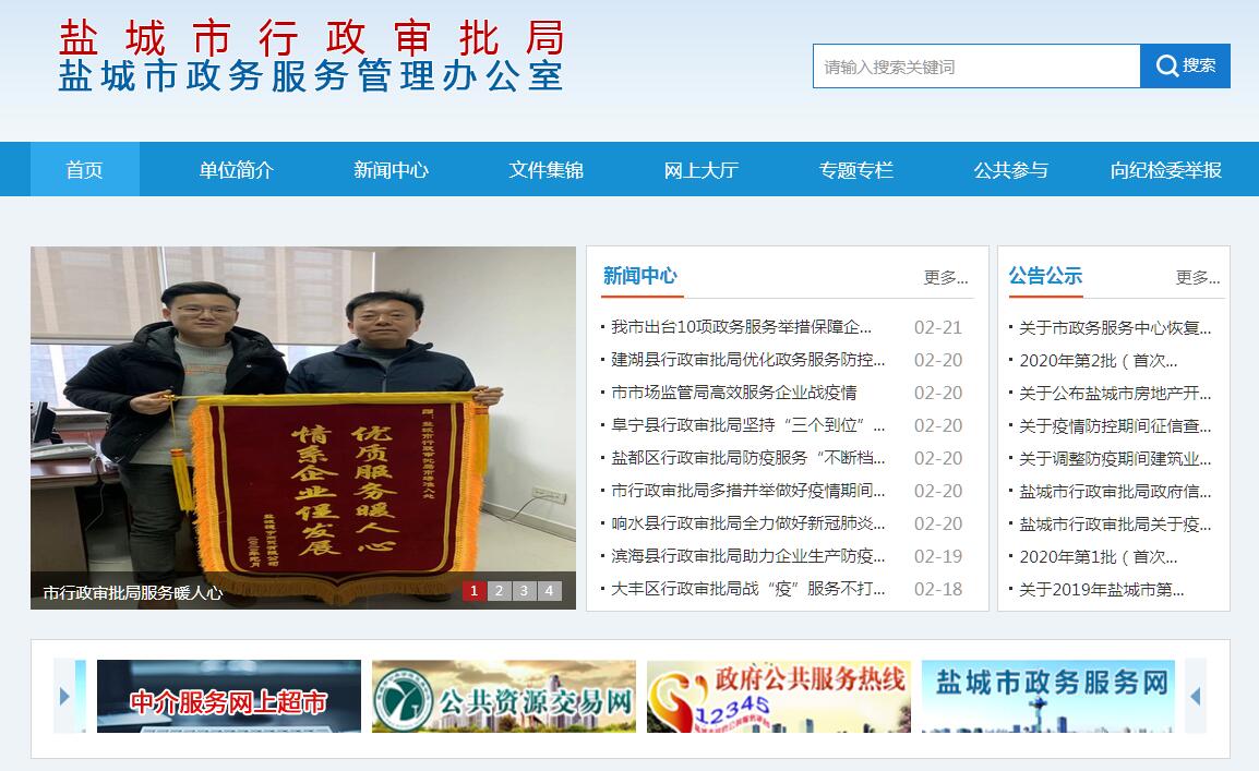 盐城市行政服务中心成立于2001年3月;2012年7月更名为市政务服务管理办公室,挂市公共资源交易管理办公室牌子,为市政府派出机构;2019年1月,根据《盐城市机构改革方案》,组织成立市行政审批局,对外保留市政务服务管理办公室牌子。市行政审批局主要负责全市深化“放管服”改革工作的统筹协调和组织实施;负责全市政务服务综合管理、业务指导。组织市级行政审批服务事项集中受理办理;负责全市政务服务体系建设工作;负责拟订全市政务服务信息化建设、一体化在线政务服务平台的发展规划并组织实施;负责全市政府系统电子政务的规划、建设和管理工作;负责市场准入、社会事务、投资建设等方面划入行政审批事项的办理工作;负责全市公共资源交易指导、协调、监督、管理工作,履行全市公共资源交易活动的统一监管职责;承担全市政府公共服务平台的建设运行、业务指导、组织协调、督办考核工作,承担人民来信、网民留言交办、督办工作。局内设办公室、政策法规处、行政审批制度改革处、业务协调处、信息处(效能督查处)、市场准入处、社会事务审批处、投资审批处、建设审批处、公共资源交易管理处、民生服务处、组织人事处、机关党委;下设市公共资源交易中心、市电子政务办、市“12345”督查中心(市项目代办服务中心、市评审勘验服务中心)。市行政审批局政务服务大厅服务面积近3万平方米,工作人员近400名。市公共资源交易中心,隶属市行政审批局管理,为副处级全额拨款事业单位,负责大市区范围内公共资源交易服务及管理。撤销区一级招投标交易机构,将市建设工程、货物与服务、政府采购、产权交易、交通、水利、土地、医疗设备等行业招投标交易机构职能及人员与原主管部门剥离,整建制划转市公共资源交易中心,实行集中交易。各相关职能部门招投标监管机构及人员集中进驻市公共资源交易管理办公室,实行统一监管。市公共资源交易中心内设办公室、工程交易服务处、政府采购服务处、机电和医疗设备交易服务处、产权和土地交易服务处、网络信息处、业务受理处7个处室。市电子政务办公室。隶属于市行政审批局管理,为副处级参公事业单位,负责协调指导全市电子政务工作,制定市电子政务发展规划及相关标准规范并组织实施;承担电子政务网络系统的建设、运维及管理工作;负责电子政务系统电子认证的实施和管理工作,做好电子政务系统安全保护工作;承担市级政府部门电子政务建设年度项目计划管理工作,指导市级政府各部门、各县(市、区)开展电子政务工作;负责市政府网站集约化平台和市政府门户网站运行维护工作。市电子政务办公室内设综合科、技术应用科、网络管理科、信息科、政府网站管理科5个科室。市“12345”督查中心(市项目代办服务中心、市评审勘验服务中心),隶属于市行政审批局管理,为正科级全额拨款事业单位,负责指导、协调、督办、检查、通报、考核话务呼叫中心和二级网络成员单位办理群众诉求工作;协调交办呼叫中心无法答复的疑难事项、需要多个单位共同办理的复杂事项、重大事项和违法违纪举报事项;直接调查处理重要的诉求;定期编发简报,及时上报重要社情民意、重大信息、阶段性工作总结;指导、协调、推进政务信息知识库建设和更新;承办市委、市政府和“12345”政府公共服务平台建设工作领导小组交办的工作。另外负责为项目提供审批业务咨询、申报材料指导、审批事项报件、审批难题协调、代领审批结果等全程免费帮办服务;统筹推进项目审批过程中需行政审批职能部门组织现场勘察、专家论证、技术性审查、社会听证等工作,承担综合窗口等工作。近年来,我局积极推进国家级政务服务标准化试点工作,修订基础设施、审批服务、内部管理和政务公开等方面标准1204项,通过标准化管理,实现“岗岗有标准、步步有规范、人人有责任”的目标要求。