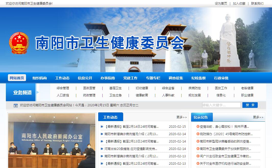 南阳市卫生健康委员会主要职责:(一)贯彻执行党和国家国民健康、卫生健康事业发展法律法规、政策、规划,组织实施卫生健康事业发展的地方性法规、规章、政策和标准。统筹规划全市卫生健康资源配置,负责全市卫生健康规划编制和实施。拟订推进全市卫生健康基本公共服务均等化、普惠化、便捷化和公共资源向基层延伸等措施并组织实施。(二)协调推进深化医药卫生体制改革,研究提出全市深化医药卫生体制改革措施的建议。组织深化公立医院综合改革,推进管办分离,健全现代医院管理制度,组织实施国家及省、市推动卫生健康公共服务提供主体多元化、提供方式多样化的措施,提出医疗服务和药品价格政策性建议。(三)拟订并组织落实全市疾病预防控制规划、免疫规划以及严重危害人民健康公共卫生问题的干预措施。负责卫生应急工作,组织指导突发公共卫生事件的预防控制和各类突发公共事件的医疗卫生救援。(四)拟订并协调落实应对人口老龄化政策措施,负责推进老年健康服务体系建设和医养结合工作。(五)贯彻落实国家药物政策和国家基本药物制度,开展药品使用监测、临床综合评价和短缺药品预警。组织开展食品安全风险监测评估。(六)负责职责范围内的职业卫生、放射卫生、环境卫生、学校卫生、公共场所卫生、饮用水卫生等公共卫生的监督管理,负责传染病防治监督,健全卫生健康综合监督体系。(七)拟订全市医疗机构、医疗服务行业、采供血机构管理办法并监督实施,建立医疗服务评价和监督管理体系。会同有关部门贯彻执行国家卫生健康专业技术人员资格标准。组织实施医疗服务规范、标准和卫生健康专业技术人员执业规则、服务规范。负责医疗广告审查。(八)负责计划生育管理和服务工作,开展人口监测预警,研究提出人口与家庭发展相关建议,提出完善计划生育政策的配套措施。(九)指导基层医疗卫生、妇幼健康服务体系建设,加强全科医生队伍建设。推进卫生健康科技创新发展。(十)负责市保健对象的医疗保健工作,负责重要会议与重大活动的医疗卫生保障工作。(十一)承担市爱国卫生运动委员会、市艾滋病防治工作委员会、市老龄工作委员会、市人口和计划生育工作领导小组、市保健委员会日常工作。指导南阳市计划生育协会的业务工作。(十二)完成市委、市政府交办的其他任务。