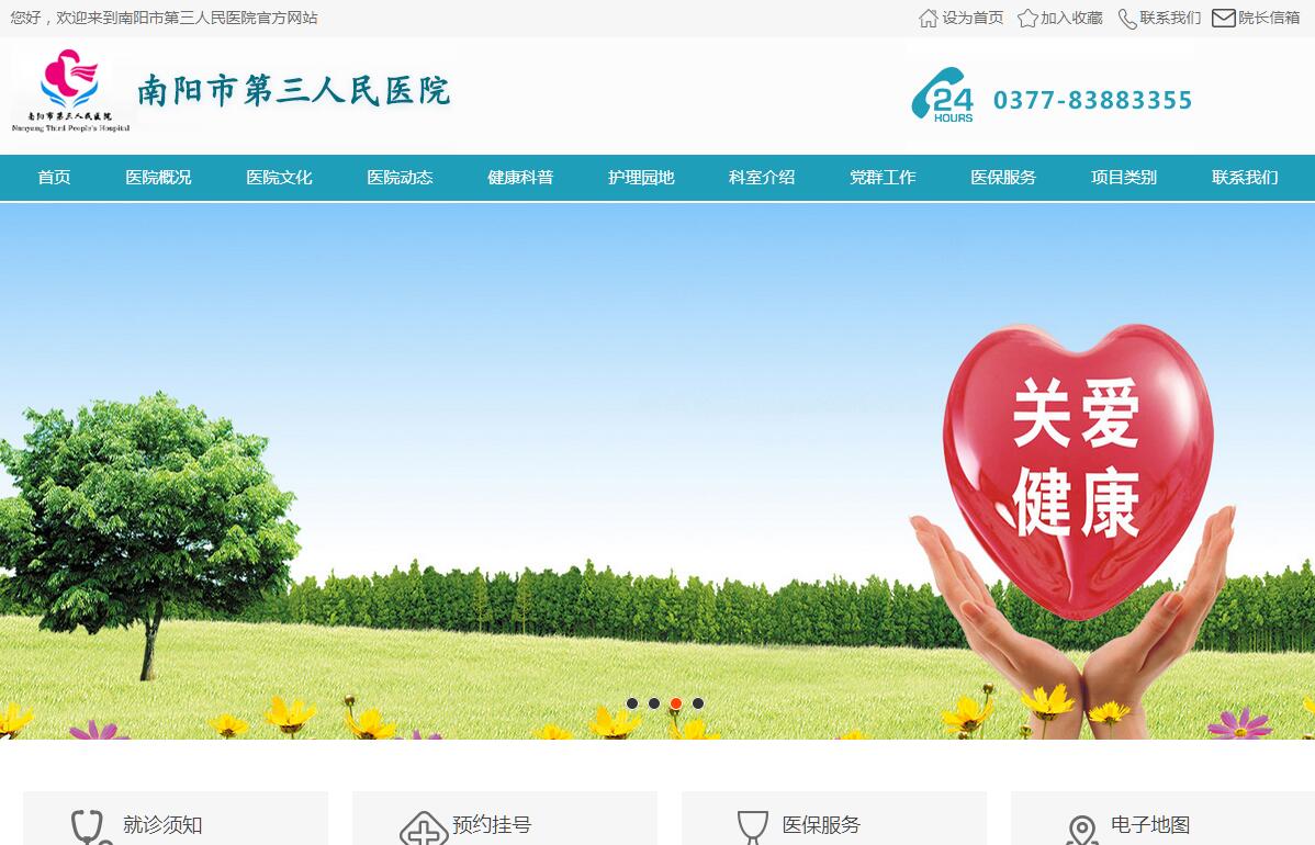 南阳市第三人民医院始建于1948年10月,建院至今63年的历史,前身是南阳地直机关公费医疗门诊部(地直公疗医院)。1995年11月撤地设市,改为南阳市第三人民医院,现已发展成为南阳市离休干部、城镇职工、居民医保定点医院,郑州大学第一附属医院医疗教学协作医院和网络会诊中心分中心,南阳市中韩整形美容专家手术基地,河南省残疾人联合会小儿脑瘫手术治疗定点医院,河南省残疾人申请机动车驾驶证体检医院,南阳市伤残军人鉴定定点医院,南阳市120网络单位。按照国务院关于发展城市社区卫生服务的要求,于2007年10月成立七一社区卫生服务中心。中心坚持“预防为主,为民惠民”方针,以医院为依托,开展“预防、保健、健康教育、计划生育技术指导、康复、基本医疗”等六位一体的服务。经过几代人的共同努力,医院确立了“大专科、强综合”的发展之路,坚持“科技兴院、以人为本”的办院宗旨,抓质量、树形象、创品牌、增效益,医院建设取得了长足发展。目前医院已经发展成为一所面向全社会开放的二级综合医院,现有职工330余人,开放床位320张。各级各类技术人员290人,正高级9名,副高级26名,中级职称(医药护技)87名,初级职称173名,研究生6名,本科86名,大专以上135名,南阳市各专业委员会副主委16名,每年外送国家级医院进修培训3--5名,省级进修10--20名,每年组织业务讲座院内70--80次,外请专家12次。医院开展的诊疗项目:开设的科目有预防保健、全科医疗、内科、外科、妇产科、计划生育、美容外科、美容牙科、美容中医科、肠道传染病、急诊医学、康复医学、麻醉、疼痛、医学检验、医学影像、中医、中西结合。病房设有:心血管内科、神经内科、内分泌科、老年康复科、微创外科、整形美容外科、疼痛科、妇产科病房;急诊、120急救站;门诊设有:中西医内、外科、中医美容科、妇科、眼、耳鼻喉、口腔科、针炙、理疗室;医技科室有超声、检验、放射、消化科、准分子、碎石科等科室。配备有优良的大型进口设备:美国GE-VolusonE8四维彩超1台、德国西门子四维超声诊断仪2台、美国史赛克腹腔镜1台、以色列飞顿光子治疗仪1台、德国西门子16排CT1台、鑫高益磁共振1台、德国西门子欢悦CT1台,意大利数字胃肠X线机1台、美国雷赛准分子激光治疗仪1台、日本尿沉渣分析仪1台、日本彩色电子胃镜1台、多功能多参数中央监护系统、心电工作站等设备。