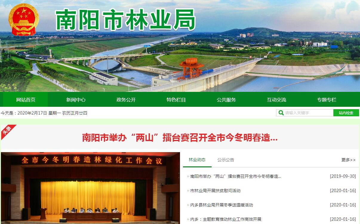 南阳市林业局主要职责:一、负责林业和草原及其生态保护修复的监督管理。组织实施林业和草原及其生态保护修复的法律、法规、规章、政策、规划和标准。负责林业和草原相关行政执法监管工作。组织开展森林、草原、湿地、荒漠和陆生野生动植物资源动态监测与评价。二、组织林业和草原生态保护修复和造林绿化工作。组织实施林业和草原重点生态保护修复工程,指导公益林、商品林和国家储备林的培育,指导实施退耕还林和长江防护林工程建设,组织、指导全民义务植树、城乡绿化工作。指导林业和草原有害生物防治、检疫工作。承担林业和草原应对气候变化的相关工作。承担南阳市绿化委员会日常工作。三、负责森林、草原、湿地资源的监督管理。组织编制并监督执行全市森林采伐限额。负责林地管理,拟订林地保护利用规划并组织实施。指导公益林划定和管理工作,管理国有森林资源。负责草原禁牧、草畜平衡和草原生态修复治理工作,监督管理草原的开发利用。负责湿地生态保护修复工作,组织编制湿地保护规划并按相关地方标准指导实施,监督管理湿地的开发利用。指导基层林业工作站的建设和管理。四、负责监督管理荒漠化防治工作。组织开展荒漠化调查。组织拟订防沙治沙、石漠化防治建设规划,拟订相关地方标准,监督管理沙化土地的开发利用。五、负责陆生野生动植物资源监督管理。组织开展陆生野生动植物资源调查,指导陆生野生动植物的救护繁育、栖息地恢复发展、疫源疫病监测,监督管理陆生野生动植物猎捕或采集、驯养繁殖或培植、经营利用,按分工监督管理野生动植物进出口。六、负责监督管理各类自然保护地。根据授权,负责自然保护地的自然资源资产管理和国土空间用途管制。负责自然遗迹、地质公园的管理。组织申报国家级自然保护地,提出新建、调整各类省级自然保护地的审核建议并按程序报批。组织审核世界自然遗产的申报,会同有关部门审核世界自然和文化双重遗产的申报。负责生物多样性保护有关工作。七、负责推进林业和草原改革相关工作。拟订集体林权制度、国有林场、草原等改革意见并监督实施。拟订农村林业发展、维护林业经营者合法权益的政策性措施,指导农村林地承包经营工作。开展退耕(牧)还林还草,负责天然林保护工作。八、拟定林业和草原资源优化配置及木材利用政策性措施,监督实施相关林业产业地方标准,组织指导林产品质量监督。指导生态扶贫相关工作。九、指导国有林场基本建设和发展,承担经济林、花卉管理工作。组织林木种子、草种种质资源普查,组织建立种质资源库,负责良种选育推广,管理林木种苗、草种生产经营行为,监管林木种苗、草种质量。监督管理林业和草原生物种质资源、转基因生物安全、植物新品种保护。十、负责落实综合防灾减灾规划相关要求,组织编制森林和草原火灾防治规划并按相关防护标准指导实施,指导开展防火巡护、火源管理、防火设施建设等工作。组织指导国有林场和草原开展防火宣传教育、监测预警、督促检查等工作。必要时,可以提请应急管理部门,以市级应急指挥机构名义,部署相关防治工作。依法履行林业安全生产监督管理职责,指导全市国有林场的安全监督管理工作。负责林业系统安全生产统计分析,依法参加有关事故的调查处理。十一、监督管理林业和草原中央、省拨付我市的资金、市级资金及国有资产,提出林业和草原预算内投资、市级以上财政性资金安排建议;按规定权限审核国家、省级、市级规划内和年度计划内投资项目。参与拟订林业和草原经济调节政策,组织实施林业和草原生态补偿工作。十二、负责林业和草原科技、教育和外事工作,指导全市林业和草原人才队伍建设。组织实施林业和草原对外交流与合作事务,承担湿地、防治荒漠化、濒危野生动植物等国际公约履约工作。十三、完成市委、市政府交办的其他任务。