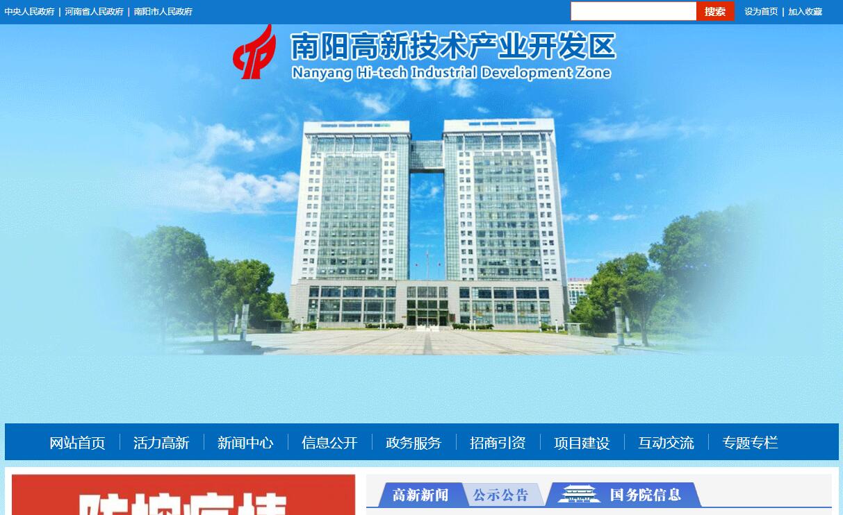 南阳高新技术产业开发区于1995年3月经河南省政府批准成立;2005年顺利通过国家发改委等5部委审核,纳入国家开发区名录库;2010年9月经国务院批准,晋升为国家级高新区。现辖张衡、百里奚2街道、1个产业集聚区工业园,共14个社区、4个行政村,总人口约16万人。南阳高新区建区以来,以“发展高科技,实现产业化”为方向,确立了一区多园的发展模式,大力培植特色高新技术产业集群,加强科技创新体系建设,不断优化发展环境,协调发展社会事业,逐步建立起以光电、装备制造等为主导的产业体系,基础设施日益完善,经济发展速度不断加快,综合竞争实力逐年增强,成为南阳区域经济发展的重要引擎和对外开放的窗口。南阳高新区是国家光电高新技术产业化基地、河南省首批创新型产业集聚区(试点)、省级防爆特色产业。新时期,南阳高新区将以科学发展观为指导,紧紧围绕建设“创新型特色产业园区”这个目标,坚持“主动融入、持续求进、勇于担当、奋力争先”十六字方针,努力使南阳高新区成为中原经济区南阳主体区的重要增长极、创新驱动和科技示范的服务区、培育新兴战略性产业的高地、生态活力宜居的新城区,为南阳 “三化”协调发展和“五区”建设提供科技、智力和人才支持。