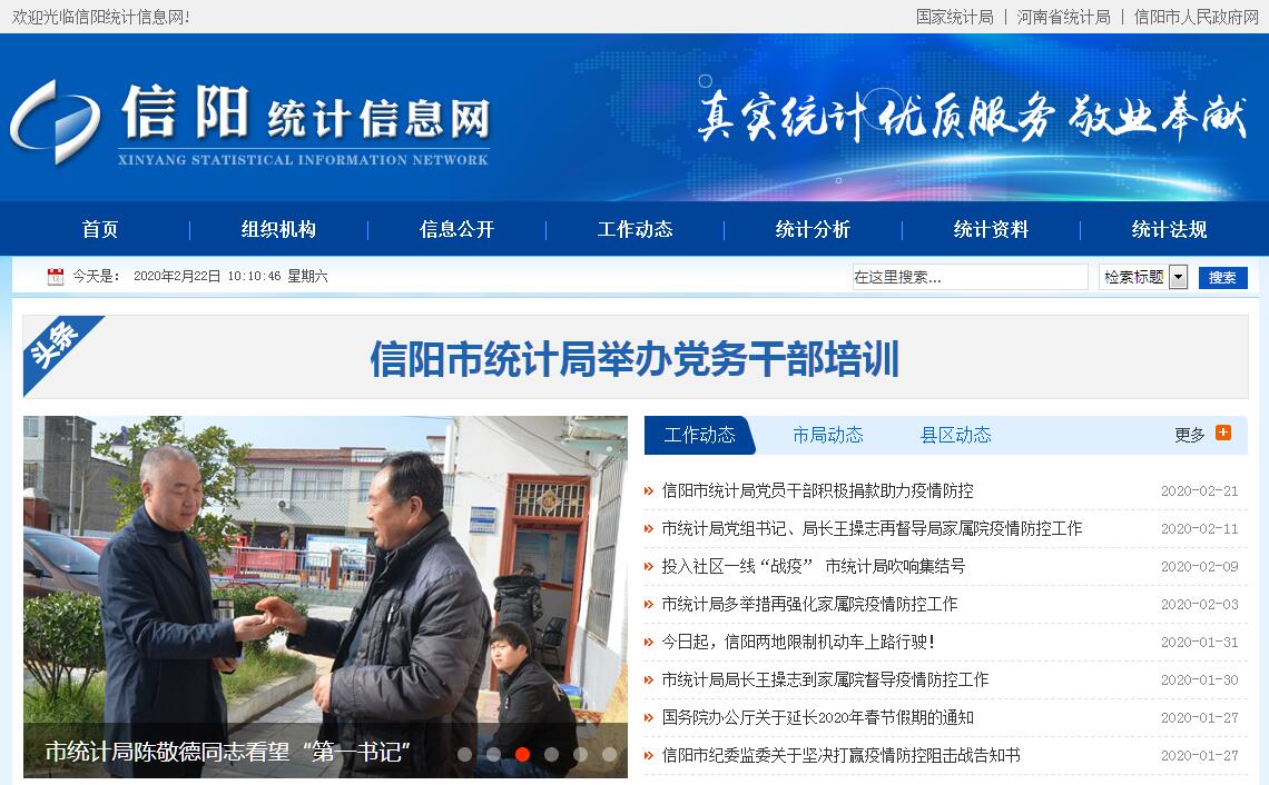 信阳市统计局贯彻落实党中央关于统计工作的方针政策和决策部署,在履行职责过程中坚持和加强党对统计工作的集中统一领导。其主要职责是:(一)组织领导和协调指导全市统计工作,确保统计数据真实、准确、及时;贯彻执行国家统计政策、规划、基本统计制度和统计标准;贯彻执行国家统计法律、法规及规章,制定部门规范性文件;负责基本单位名录库建设和维护管理。(二)负责拟订统计行政执法相关政策标准,负责重大案件查处,组织协调跨区域执法工作,负责提出统计违纪违法责任人处分处理建议,承担法律法规赋予市级统计行政部门履行的其他执法职责,监督指导县(区)、市管管理区(开发区)统计行政执法工作。(三)贯彻执行国家和省统计局国民经济核算制度,组织核算各县(区)、市管管理区(开发区)生产总值,管理各县(区)、市管管理区(开发区)国民经济核算工作。(四)会同有关部门贯彻落实全国重大国情国力普查计划、方案,组织实施全市人口、劳动工资、经济、农业等国情国力普查和投入产出调查等大型专项调查,汇总、整理和提供有关国情国力方面的统计数据。(五)组织实施农林牧渔业、工业、建筑业、批发和零售业、住宿和餐饮业、房地产业、装卸搬运和仓储业、互联网和相关服务、软件和信息技术服务业、租赁和商务服务业、居民服务、修理和其他服务业、文化体育和娱乐业等统计调查,组织实施能源、投资、人口、劳动工资、科技、企业创新、文化产业、社会发展基本情况、环境基本状况等统计调查,收集、汇总、整理和提供有关调查的统计数据;综合整理和提供地质勘查、资源、房屋、对外贸易、对外经济、交通运输、邮政、信息传输、财政金融税收、旅游、教育、卫生、社会保障、公用事业等全市性基本统计数据。(六)组织实施规模以下工业抽样调查、规模以下工业企业成本费用调查、建筑业小微企业抽样调查、小微企业固定资产投资情况调查、规模以下企业创新调查、限额以下批发零售住宿餐饮行业抽样与问卷调查、规模以下服务业抽样调查,开展调查情况分析研究;组织实施重要统计监测评价考核和社情民意调查。(七)组织各县(区)、市管管理区(开发区)及市政府各部门的经济、社会、科技和资源环境统计调查;统一核定、管理、公布全市性基本统计资料,定期发布全市国民经济和社会发展情况的统计信息。(八)对国民经济、社会发展、科技进步和资源环境等情况进行统计分析、统计预测和统计监督,向市委、市政府及有关部门提供统计信息和咨询建议。(九)依法审批或者备案市级各部门和县级统计调查项目、地方统计调查项目;指导专业统计基础工作、统计基层业务基础建设;组织建立全市服务业统计信息共享制度和发布制度;建立健全统计数据质量审核、监控和评估制度,开展对重要统计数据的审核、监控和评估;依法监督管理涉外调查活动。(十)协助县(区)管理统计局局长,指导全市统计专业技术队伍建设,监督管理各县(区)政府统计部门由中央财政、省、市财政提供的统计经费和专项基本建设投资。(十一)建立并管理全市统计信息自动化系统和统计数据库系统,组织制定各县(区)、市管管理区(开发区)和市政府各部门统计数据库和网络的基本标准和运行规则,指导县(区)统计信息化系统建设。(十二)完成市委、市政府交办的其他任务。