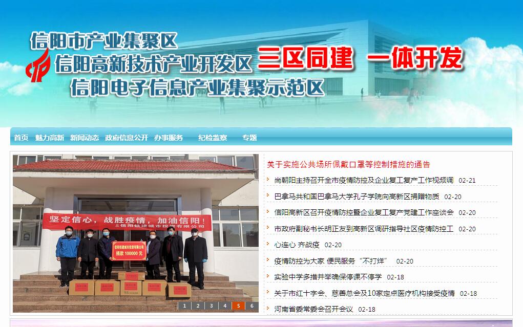 信阳高新技术产业开发区位于信阳市城区东部,规划面积11平方公里,实际控制面积73.32平方公里,是一个集高新技术开发区、电子信息产业集聚示范区和产业集聚区于一体的新型工业城区,与信阳电子信息产业集聚示范区和信阳市产业集聚区套和运作。自2010年以来先后荣获“全国模范劳动关系和谐工业园区”、“河南省十快产业集聚区”、“全省对外开放工作先进产业集聚区”和“河南省先进产业集聚区”等荣誉称号。信阳高新技术产业开发区,位于信阳市中心城区东部。2004年9月正式确定管理区域,总面积73.32平方公里。区位优越、交通便利。工业城西临107国道和京广铁路,京珠高速、沪陕高速、312国道、宁西铁路和通车的京广高速铁路穿境而过,高速公路出入口及宁西铁路信阳东站、京广高速铁路信阳客运站均设在辖区内。信阳高新技术产业开发区管委会下设办公室、招商局、建设局、财政局、规划局、国土局、工商局、国税局、地税局、经贸发展局、社会事业局、行政执法局等十二个部门,下辖城东办事处。信阳高新技术产业开发区着力打造特色产业园,以航天特种车辆、航天高端紧固件项目为依托,重点打造航天产业园;以茶产业片区为依托,重点打造信阳毛尖、“信阳红”茶产业园;以华仪开关、信电电器、万泰电器为依托,重点打造电器产业园;以万华板业为依托,重点打造生态板业装备研发、制造产业园;以京珠物流长廊为依托,重点打造现代物流园;以东区小企业集群为依托,重点打造小企业孵化产业园;以泛蓝电子、东信蓝光、天扬液晶、博仕达通信等高科技电子项目为依托重点打造中部具有战略地位、河南最大的电子产业基地。
