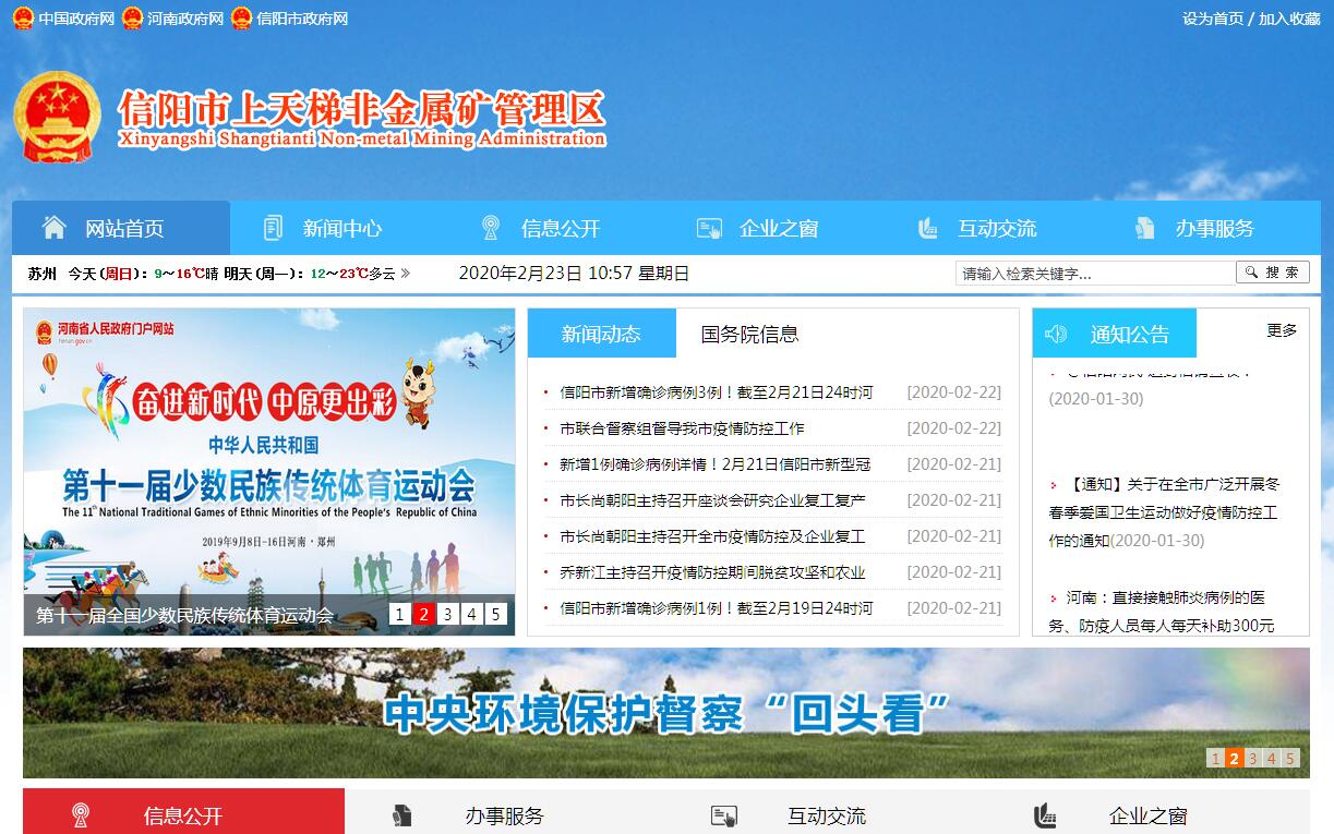 上天梯非金属矿管理区(Shangtianti Administration Area)是河南省信阳市市委、市政府的派出机构,行使市级委托和县级管理职能,被河南省中小企业服务局命名为“信阳市上天梯非金属矿管理区非金属矿产业集群”,享受省级开发区优惠政策。总面积33.5平方公里,人口2.2万人。距市中心(火车站)19公里,距市新区(市委、市政府新所在地)20公里。京广、京九、宁西铁路,京珠、大广、沪陕高速,312、107国道成双十字在此交汇,交通便利,区位优势得天独厚。风光秀丽的浉河穿境而过,自然环境优美。上天梯非金属矿藏储量很大,素有“亚洲第一矿”之誉,年综合开采加工能力150万吨。新规划建成的工业园区占地13平方公里,其水、电、气、路、通讯等基础设施齐全,功能完善,初具形成了非金属矿精深加工业集群和仓储运输及特色物流业集群。主要产品有珍珠岩、膨润土、沸石、瓷石(又名凝灰岩、含碱玻璃原料)原矿及聚合物保温砂浆、锂基膨润土等深加工系列产品,其广泛应用于建材、冶金、化工、食品、医药、环保、航空等40多个领域,产品销往全国各地,还出口到欧洲、美国、日本、韩国等海外地区。上天梯非金属矿管理区根据国家产业政策及上天梯现状和市场需求,制定了新思路、新目标、新举措:在总体发展上,坚持科学发展,以和谐促发展,切实转变经济发展方式,大力发展循环型、节约型经济,走可持续发展之路;在资源管理上,积极实施统一规划、统一管理、规范开采、深度加工、综合利用、多元投资的开发思路;在项目建设上,大力引进深加工项目,不断拉长产业链条,提高产品附加值和资源利用率,充分发挥该区宁西铁路工业走廊经济增长极的带动效应;在投资服务环境上,管理区全体干群都是企业服务员,实行“一办式”热情优质服务,为企业代办一切相关手续,努力营造亲商、安商、富商的浓厚氛围,赋予最优惠最灵活的政策和服务平台。坚持以工业为龙头,以园区为载体,以集群为方向,不断提高园区的承载功能,全力打造高标准现代化的工业集聚区和一流的投资服务环境。