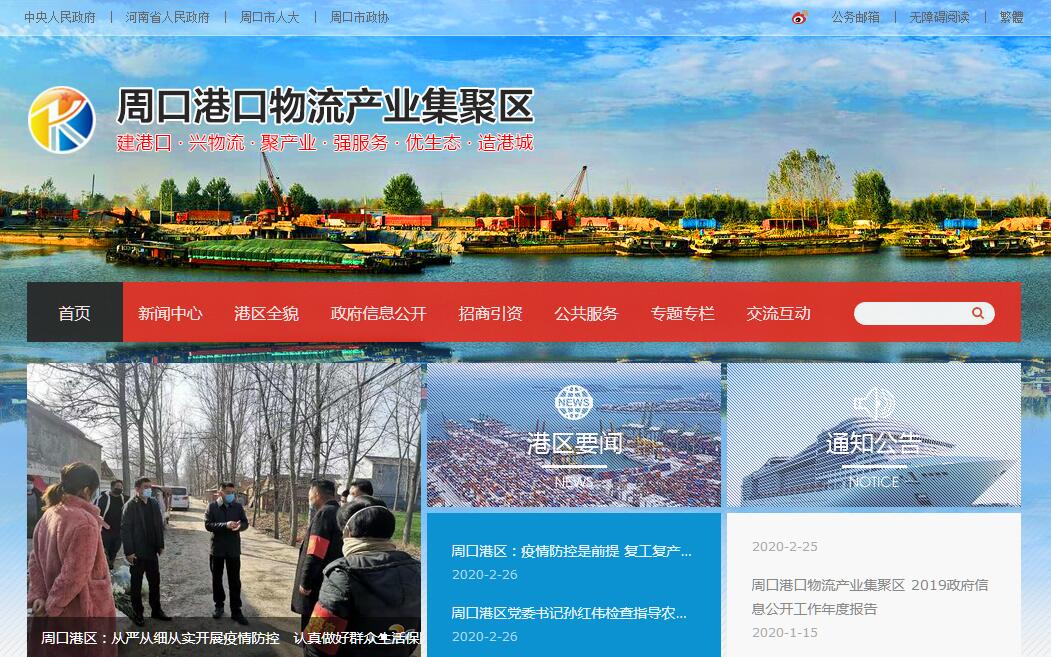 周口港口物流产业集聚区(简称周口港区)是经河南省政府批准设立的全省唯一以内河港口为依托的产业集聚区,是周口中心城区打造“满城文化半城水,内联外通达江海”中原港城的重要组成部分,是市委、市政府实施“东拓西连、建港促融”、大力发展临港经济、深度融入“一带一路”国家战略的重要载体和平台。周口港区于2013年10月25日正式成立,位于周口市中心城区沙颍河南岸,位于周口市中心城区东南部、周口市“一中心四组团四支撑”周项经济隆起带和产业发展腹地,交通区位优势突出:拥有通江达海的黄金航道——沙颍河航道和河南第一内河大港--周口中心港;在周口中心港启运的船舶经过淮河、京杭大运河可通江达海,覆盖苏、沪、浙、皖等广大地区;公路交通十分便利,大广高速、宁洛高速、国道G329线贯穿全境,且大广高速、宁洛高速在港区设有出入口;铁路运输优势突出,漯(河)阜(阳)铁路贯穿港区东西,与京广、京九铁路衔接,并规划有铁路专用线直达港区,周口中心港将与郑州航空港、郑欧班列实现无缝对接;未来将依托港口、铁路、高速公路网,成为中原经济区深度融入“一带一路”、连接21世纪海上丝绸之路的内河航运新起点,连接国家“一带一路”建设的重要内河航运枢纽,中原经济区连接长三角经济圈的桥头堡和出海口。