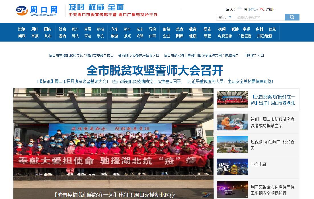 周口网(http://www.zkxww.com)是周口目前最大的新闻综合门户网站,由周口市广播电视总台主办,中共周口市委宣传部、周口市人民政府新闻办公室主管,是经国家新闻出版广电总局发证、河南省人民政府新闻办公室批准建立的正规新闻网站,周口网是市委市政府网络问政的网站之一,是继周口电视台、周口人民广播电台之后的新兴媒体,是周口唯一具有视听资格的网站,与周口电视台、周口人民广播电台实现了两台一网的宣传平台。2010年被中国互联网大会评选为“中国地方新闻网站十佳品牌奖”,2012年再次被中国互联网协会评为“全国地方网站十佳特色品牌奖”。周口网作为让世界了解周口的一个重要窗口,在第一时间向全球提供权威和真实的周口地区各类新闻资讯。周口网的宗旨是:不断创新,不断超越;新闻第一,效率第一;用户至上,服务至上。周口网的理念是:传播实用信息,提供有效服务,丰富网络生活,打造现代传媒。周口网的目标是:立足周口,纵览世界,通过互联网提供最新、最快、最鲜活新闻资讯。为促进周口市文明建设和社会信息化服务,为周口市扩大开放、走向世界服务。利用网络手段综合性、多角度、全方位地介绍周口社会经济发展的最新的权威性新闻、信息,引导周口网络新闻的舆论导向,同时积极参与周口的政府、企业上网工程,开展网上思想政治工作,全面开发网络信息服务并拓展相关领域电子商务,扩大对网民的服务功能,为广大网民提供来周口或在周口办事的便利条件。通过多种形式的互联网发布为用户提供更有价值的多方位服务。