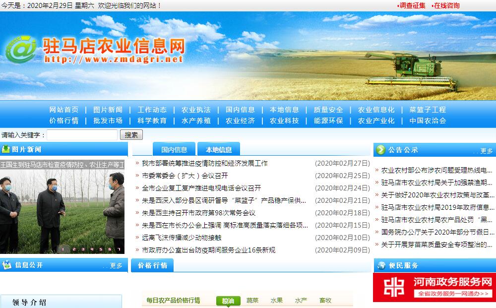 根据《驻马店市机构改革方案》,驻马店市农业农村局贯彻落实党中央、省、市关于“三农”工作的方针政策和决策部署,在履行职责过程中坚持和加强党对“三农”工作的集中统一领导。其主要职责是:1.贯彻落实农业农村有关法律法规,统筹研究和组织实施全市“三农”工作发展规划,组织起草农业农村政策建议,指导承担农业综合执法。参与涉农的金融保险等政策制定。2.统筹推动全市发展农村社会事业、农村公共服务、农村文化、农村基础设施和乡村治理。牵头组织改善农村人居环境。指导农村精神文明和优秀农耕文化建设。指导农业行业安全生产工作。3.拟订全市深化农村经济体制改革和巩固完善农村基本经营制度的政策。负责农民承包地、农村宅基地改革和管理有关工作。负责农村集体产权制度改革,指导农村集体经济组织发展和集体资产管理工作。指导农民合作经济组织、农业社会化服务体系、新型农业经营主体建设与发展。4.指导开展乡村特色产业、农产品加工业、休闲农业、乡镇企业、农业产业化等工作。提出促进农产品流通的建议,培育、保护农业品牌。发布农业农村经济信息,监测分析农业农村经济运行。承担农业统计和农业农村信息化有关工作。5.负责全市种植业、畜牧业、渔业、农垦、农业机械化等农业各产业的监督管理。指导粮食等农产品生产。组织构建现代农业产业体系、生产体系、经营体系,指导农业标准化生产。负责渔业管理和渔政渔港监督管理。6.负责全市农产品质量安全监督管理,组织开展农产品质量安全监测、追溯、风险评估。参与制定农产品质量安全标准并会同有关部门组织实施。指导农业检验检测体系建设。7.组织全市农业资源区划工作。指导农用地、渔业水域以及农业生物物种资源的保护与管理。组织水生野生动植物保护、耕地及永久基本农田质量保护和高标准农田建设工作。8.指导全市农产品产地环境管理和农业清洁生产。指导设施农业、生态循环农业、节水农业发展以及农村可再生能源综合开发利用、农业生物质产业发展。承担外来物种管理相关工作。9.负责全市有关农业生产资料和农业投入品的监督管理。组织农业生产资料市场体系建设,拟订有关农业生产资料标准并监督实施。指导制定兽药残留限量和残留检测方法标准按规定发布;指导协调兽医医政、兽药药政药检工作、执业兽医和畜禽屠宰行业管理。10.负责全市农业防灾减灾、农作物重大病虫害防治工作。指导动植物防疫检疫体系建设,协调、组织、监督动植物防疫检疫工作、发布疫情并组织扑灭。11.负责全市农业投资管理。提出农业投融资体制机制改革建议。拟订农业投资项目建设规划,提出农业投资规模和方向、扶持农业农村发展财政项目的建议,按规定权限审批农业投资项目,负责农业投资项目资金安排和监督管理。12.推动全市农业科技体制改革和农业科技创新体系建设。指导农业产业技术体系和农技推广体系建设,组织开展农业领域的高新技术和应用技术研究、科技成果转化和技术推广。负责农业转基因生物安全监督管理和农业植物新品种保护。13.指导全市农业农村人才工作。拟订农业农村人才队伍建设规划并组织实施,指导农业教育和农业职业技能开发,指导新型职业农民培育、农业科技人才培养和农村实用人才培训工作。14.牵头开展全市农业对外合作工作。承办政府间农业涉外事务,组织开展农业贸易促进和有关国际交流合作,参与农业贸易谈判工作。提出主要农产品的出口建议,负责农产品出口基地建设并配合有关部门做好农产品出口工作。15.完成市委、市政府和中共驻马店市委农村工作领导小组交办的其他事项。